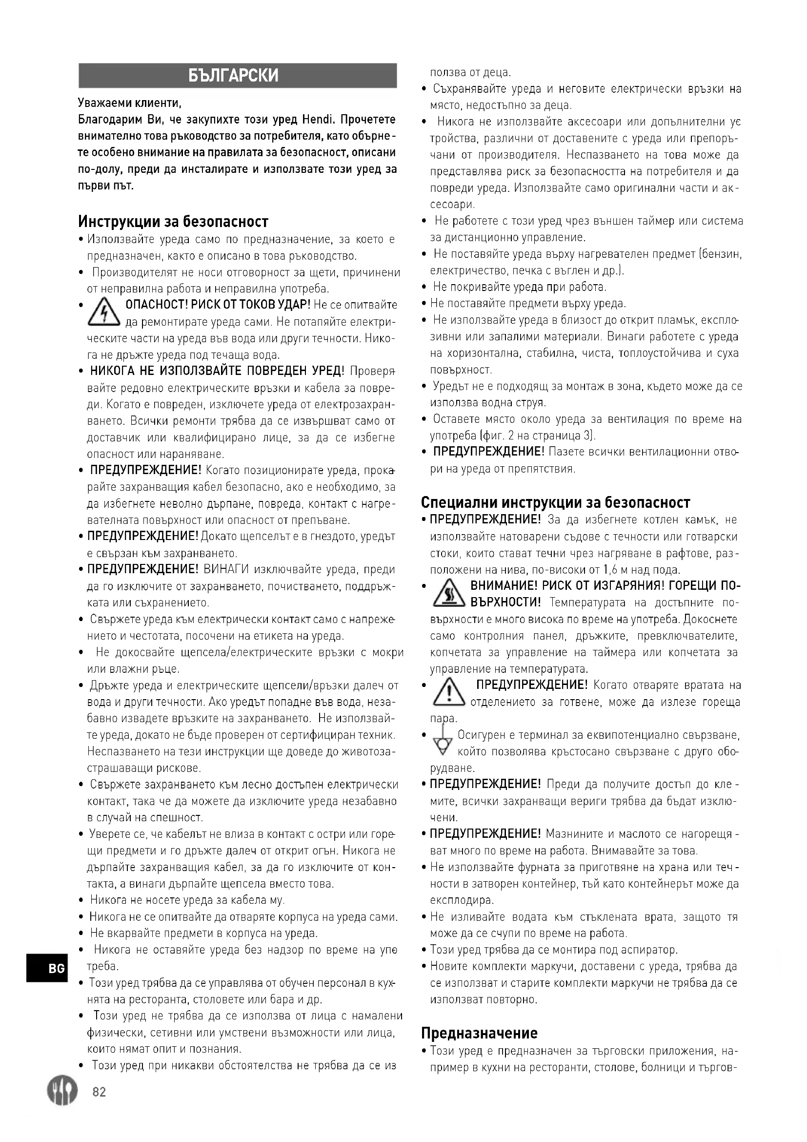 Уважаеми клиенти, Благодарим Ви, че закупихте този уред Hendi. Прочетете внимателно това ръководство за потребителя, като обърне