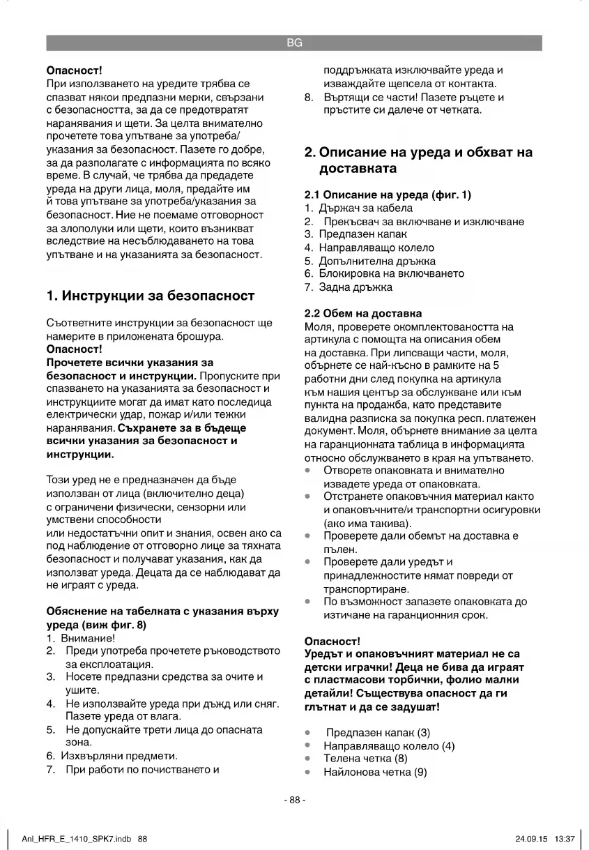 isc-gmbh.info. Ако нашата гаранционна услуга обхваща дефекта на уреда, то незабавно ще получите поправен или нов уред. По отношение на износващи се, употребявани или дефектни части обръщаме внимание на ограниченията на тази гаранция съобразно информацията относно обслужването в това упътване за употреба. Anl_HFR_E_1410_SPK7.indb 94Anl_HFR_E_1410_SPK7.indb 94 24.09.15 13:3724.09.15 13:37BA