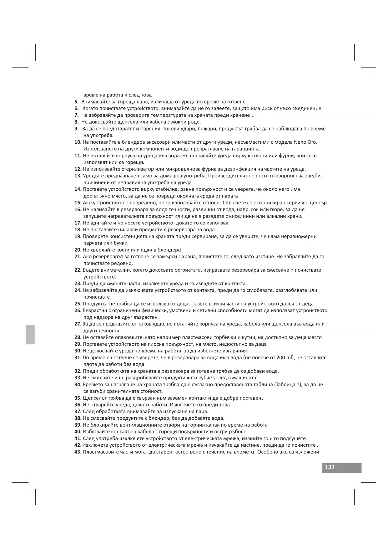 10. Не поставяйте в блендера аксесоари или части от други уреди, несъвместими с модела Neno Oro.