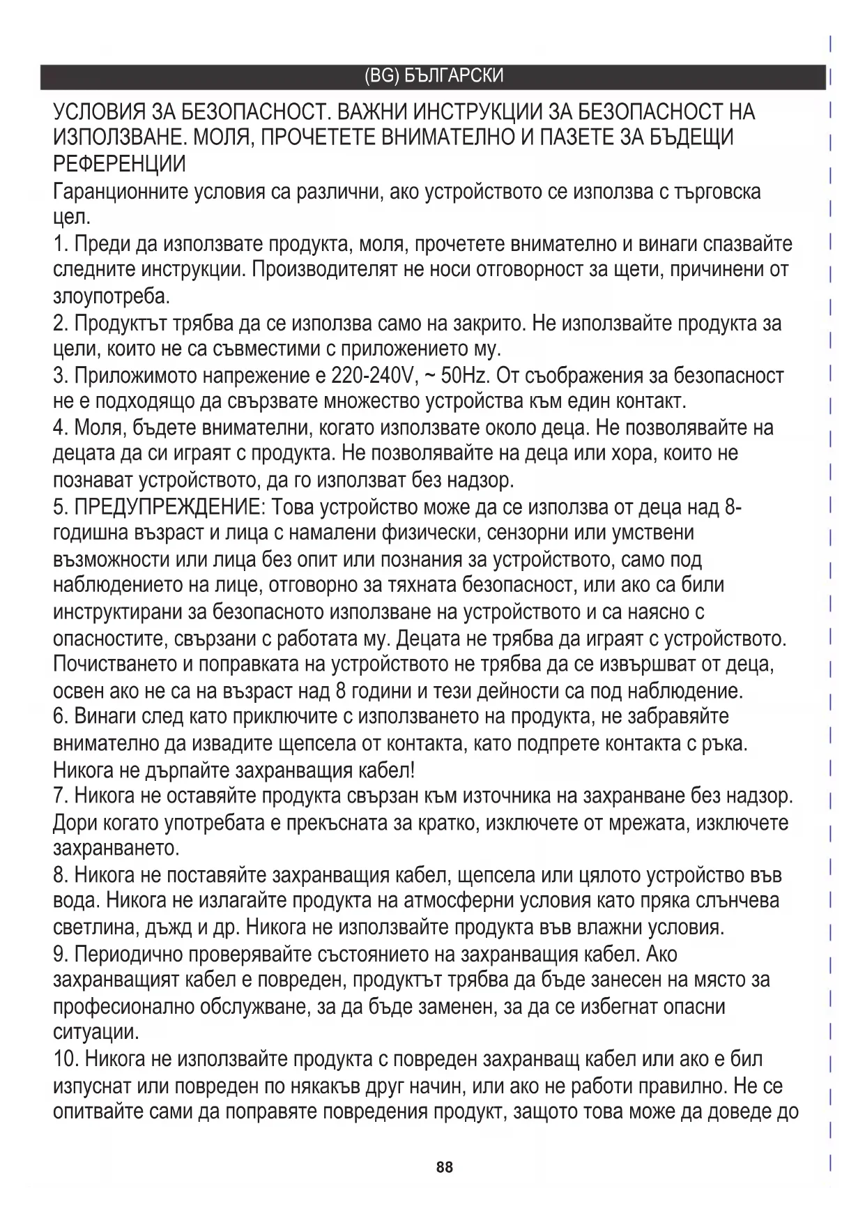 внимателно да извадите щепсела от контакта, като подпрете контакта с ръка. Никога не дърпайте захранващия кабел! (BG) БЪЛГАРСКИ89