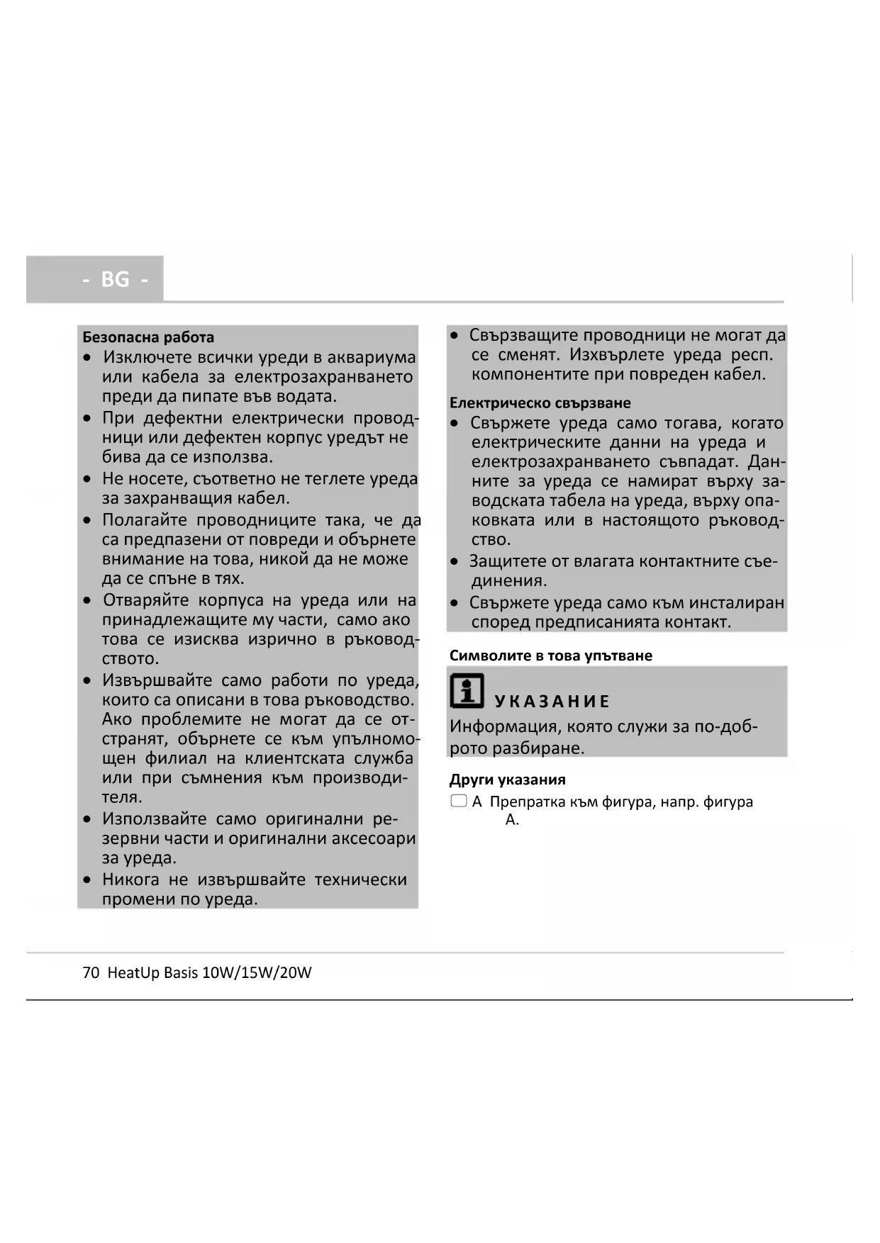 Информация, която служи за по-доб- рото разбиране. Други указания A Препратка към фигура, напр. фигура A.- BG -