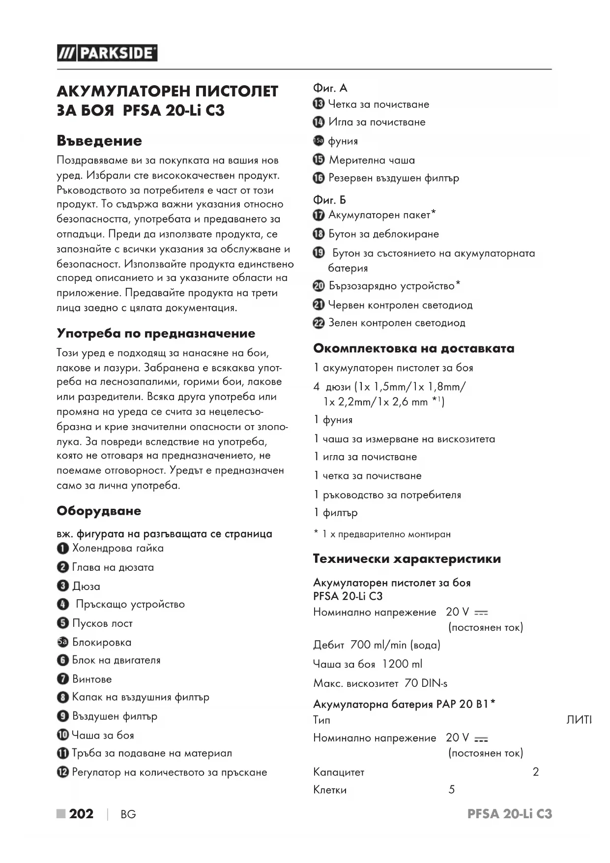 РЪКОВОДСТВО ЗА ПОТРЕБИТЕЛЯ PFSA 20-Li C3 PARKSIDE