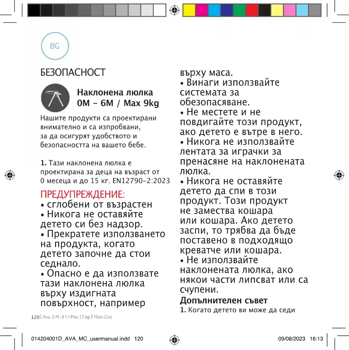 проектирана за деца на възраст от 0 месеца и до 15 кг. EN12790-2:2023 ПРЕДУПРЕЖДЕНИЕ: