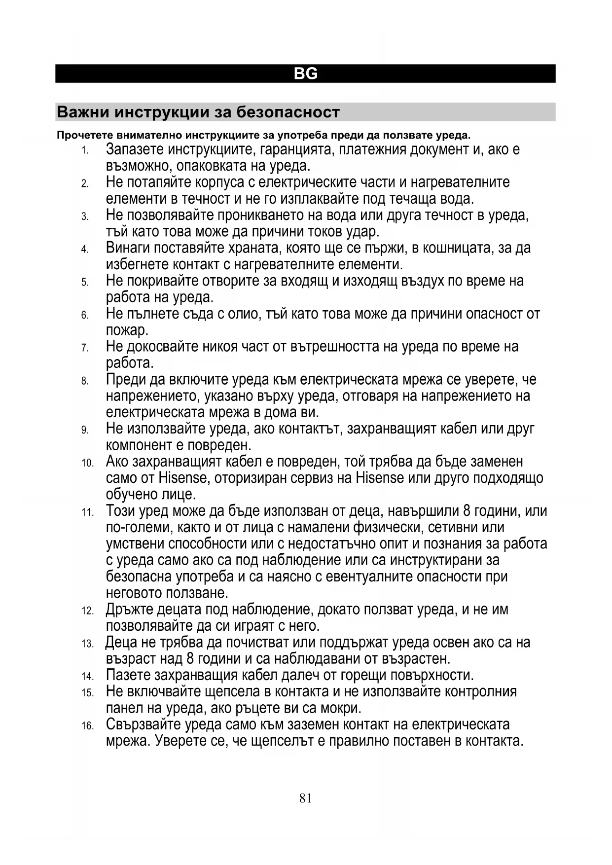 РЪКОВОДСТВО ЗА ПОТРЕБИТЕЛЯ HAF2900D HISENSE