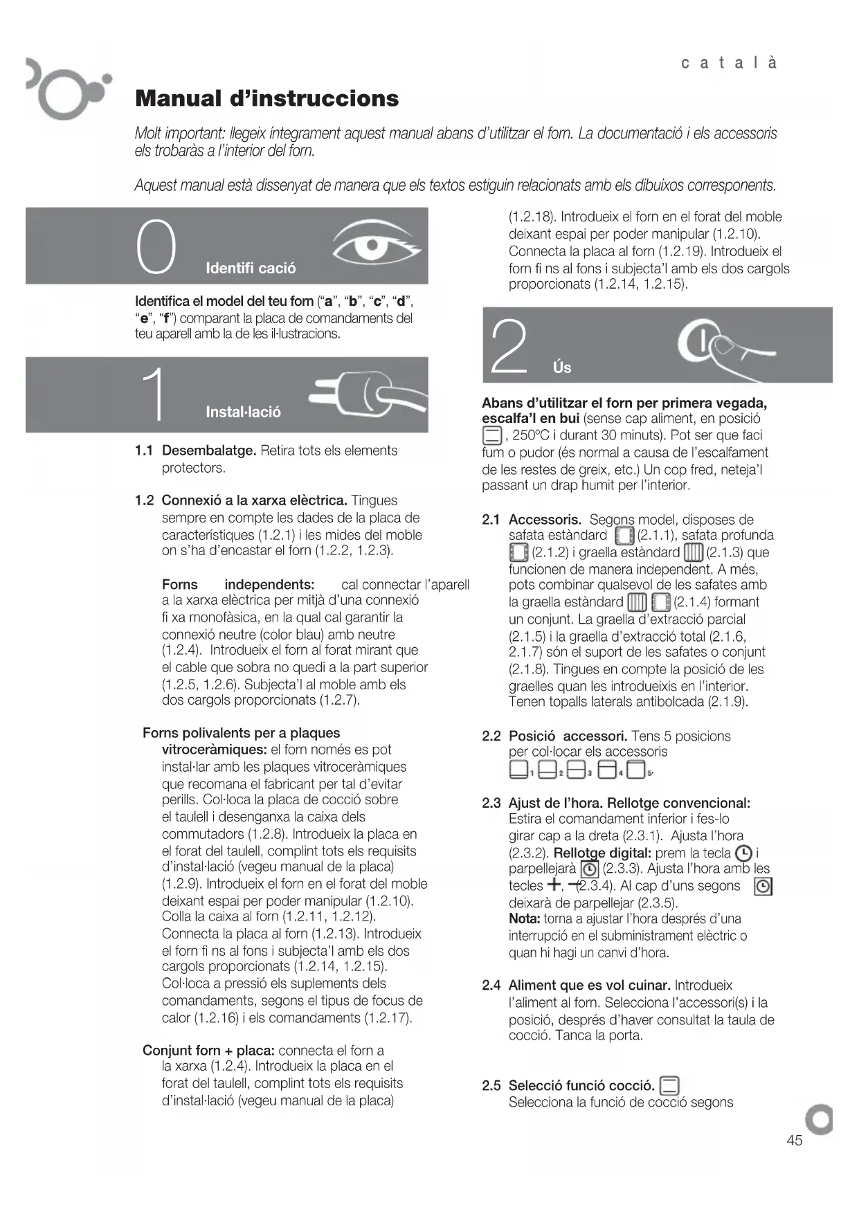 Molt important: llegeix íntegrament aquest manual abans d’utilitzar el forn. La documentació i els accessoris