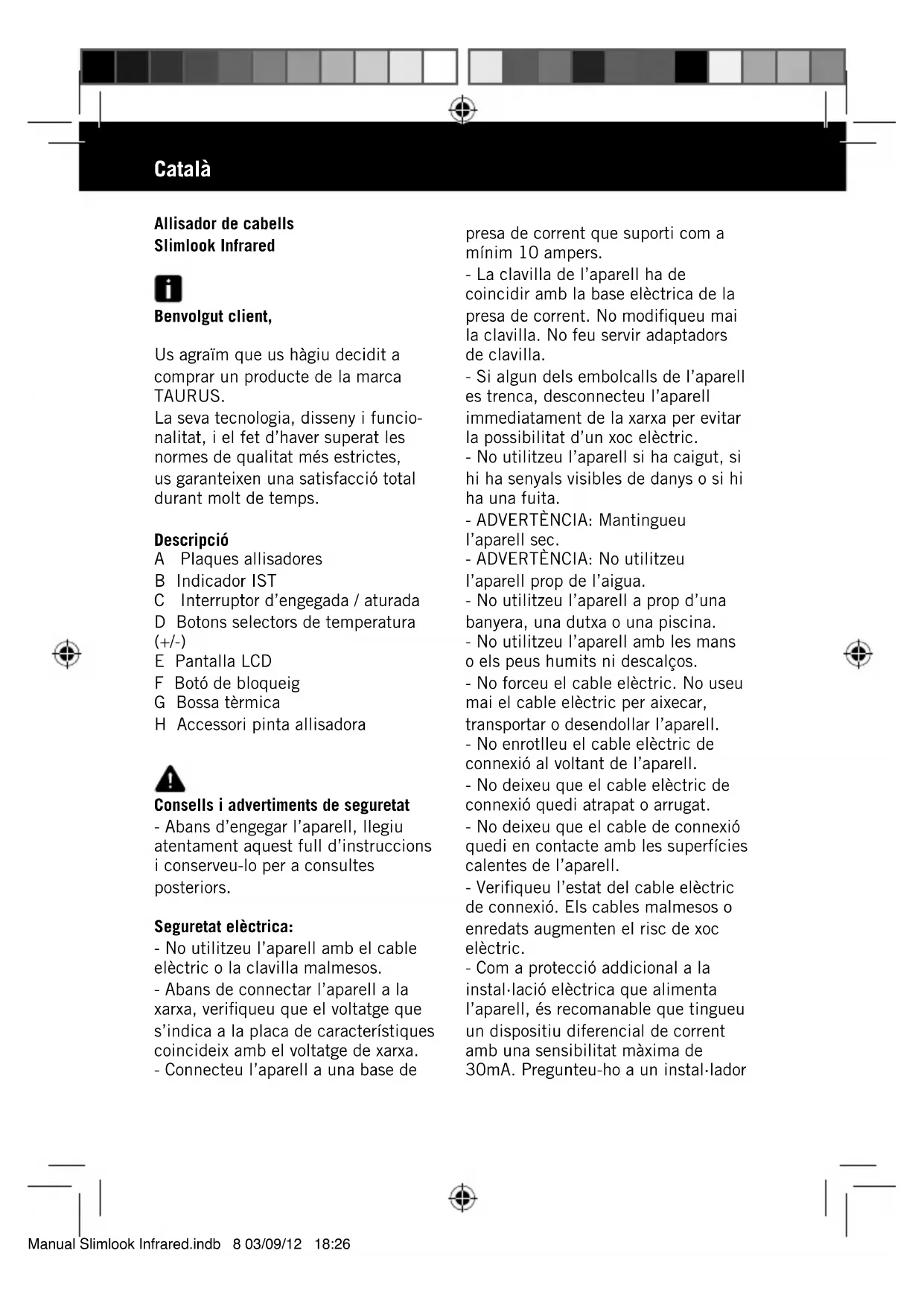 Slimlook Infrared - Planxa de cabell TAURUS - Manual d'usuari gratuït