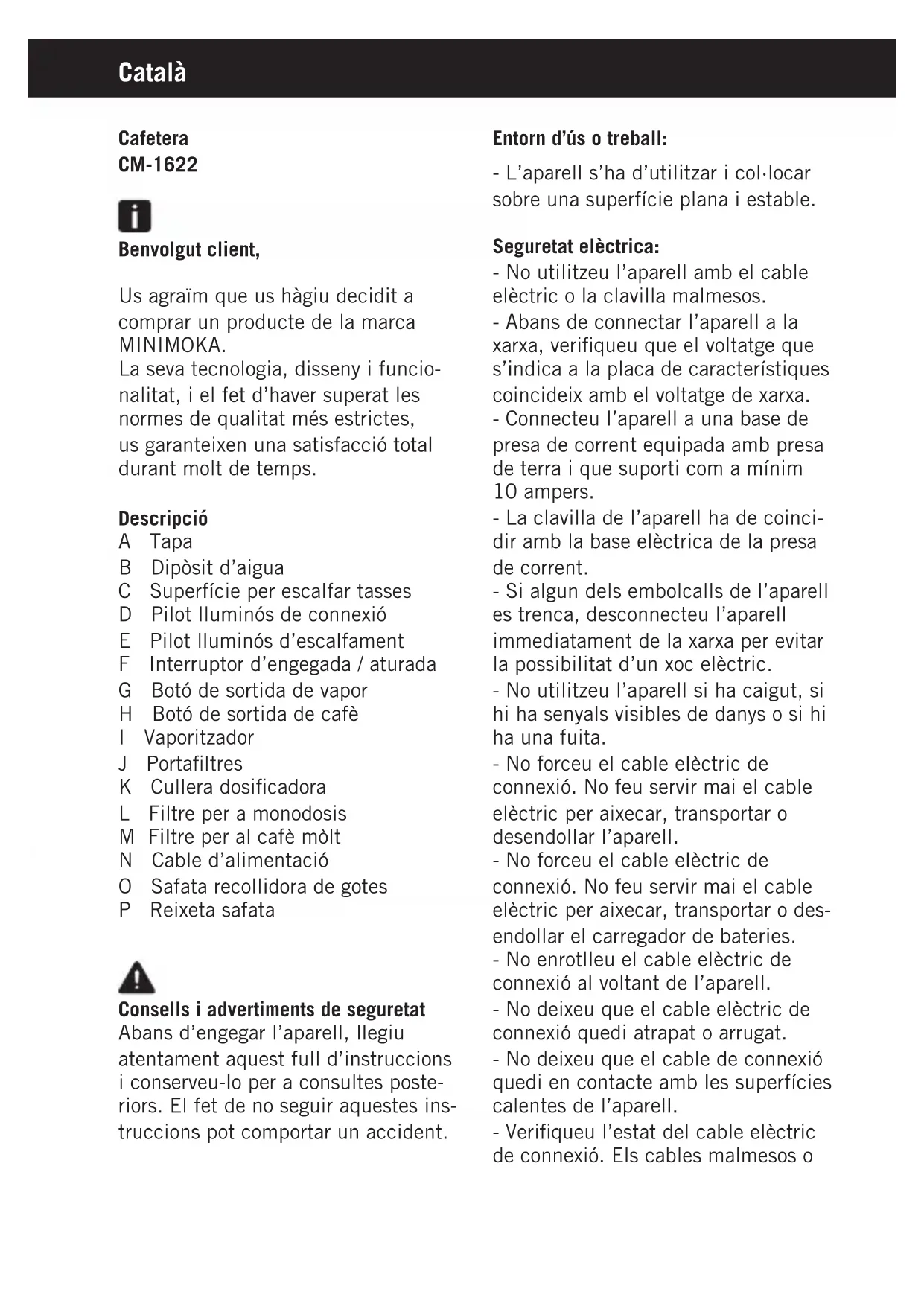 CM1622 - Màquina de cafè Minimoka - Manual d'usuari gratuït