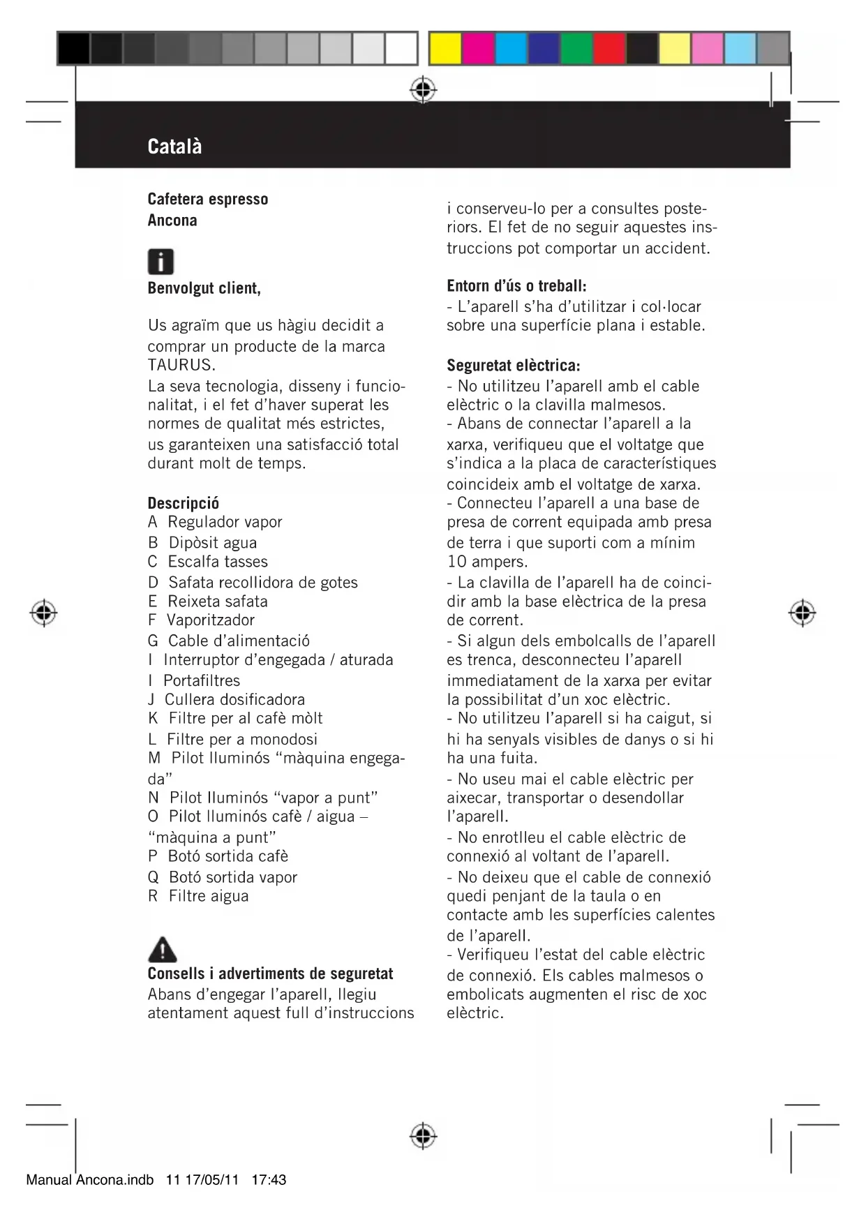 Ancona - Màquina de cafè TAURUS - Notice d'utilisation et mode d'emploi gratuit