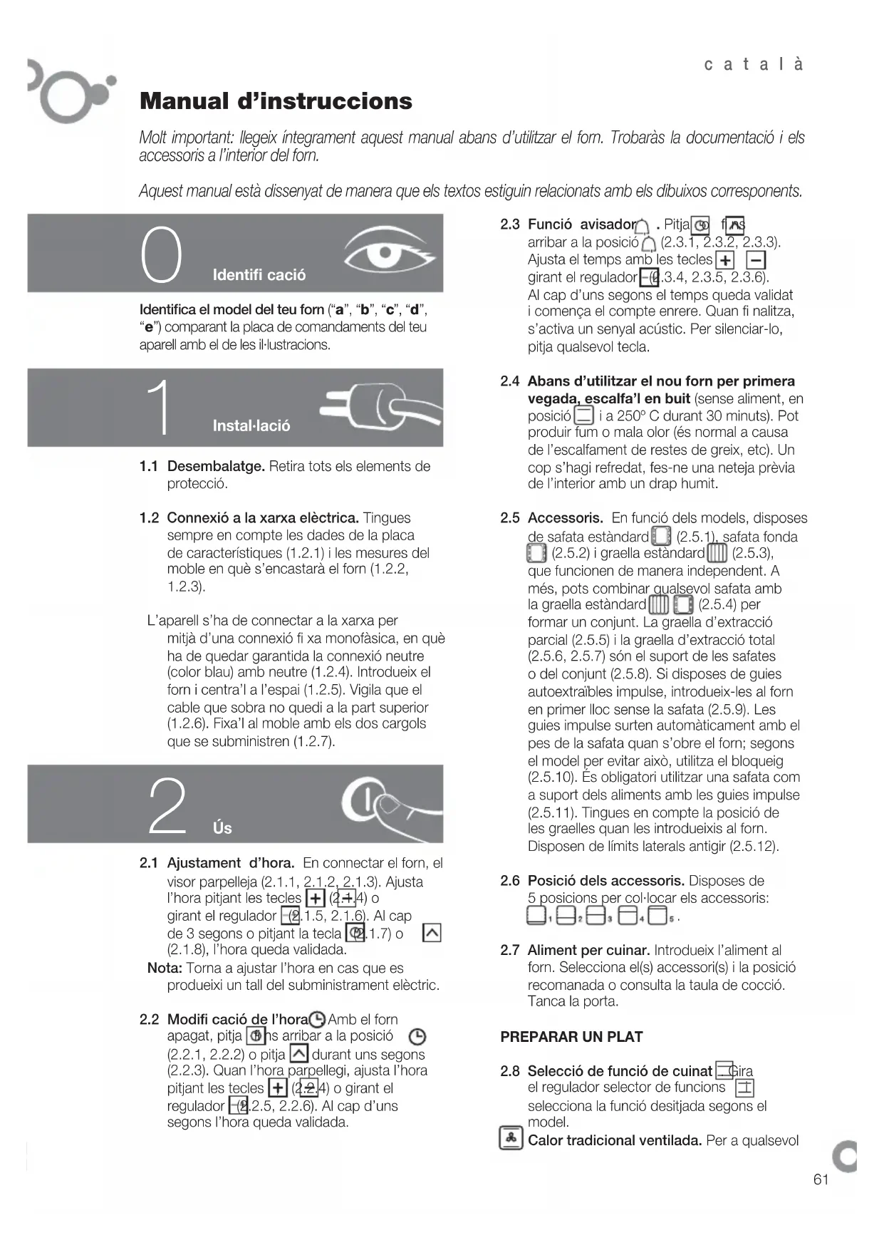 Molt important: llegeix íntegrament aquest manual abans d’utilitzar el forn. Trobaràs la documentació i els