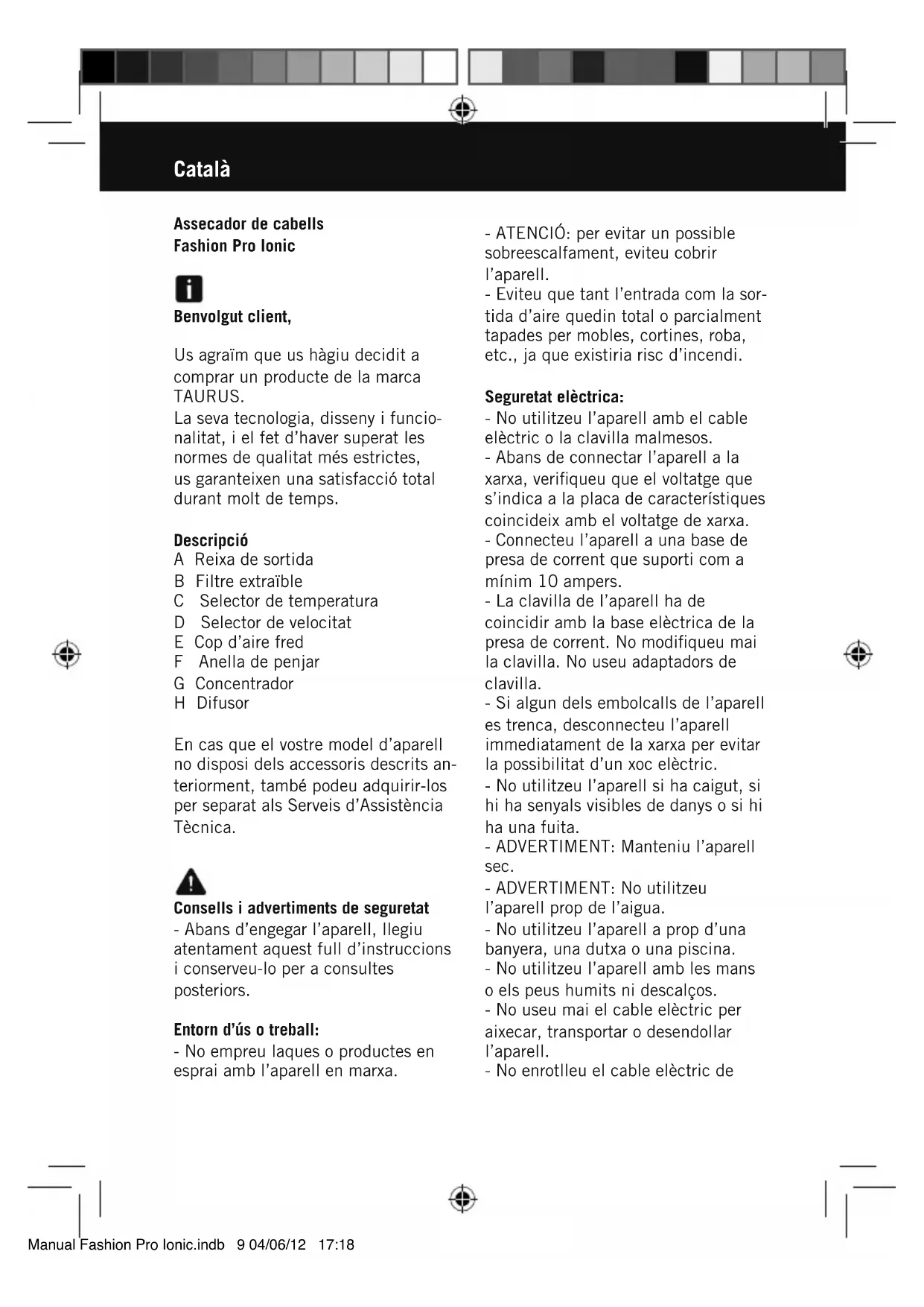 MANUAL D'USUARI Fashion PRO Ionic TAURUS