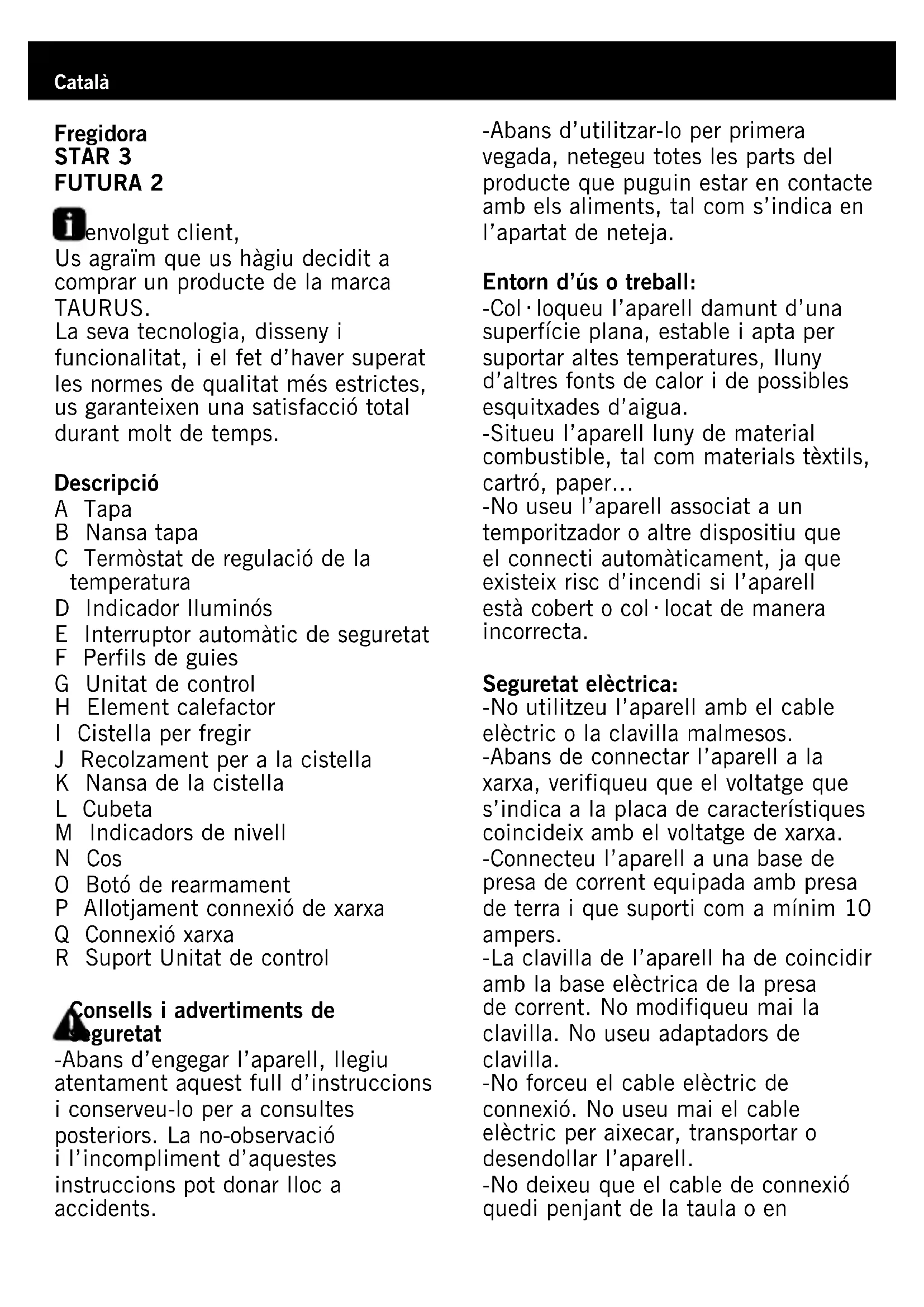 Star 3 - Freidora TAURUS - Manual d'usuari gratuït