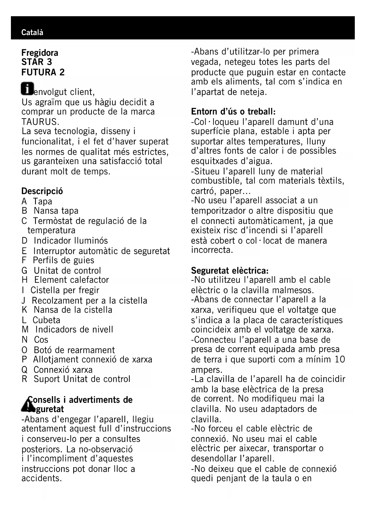 Futura 2 - Freidora TAURUS - Manual d'usuari gratuït