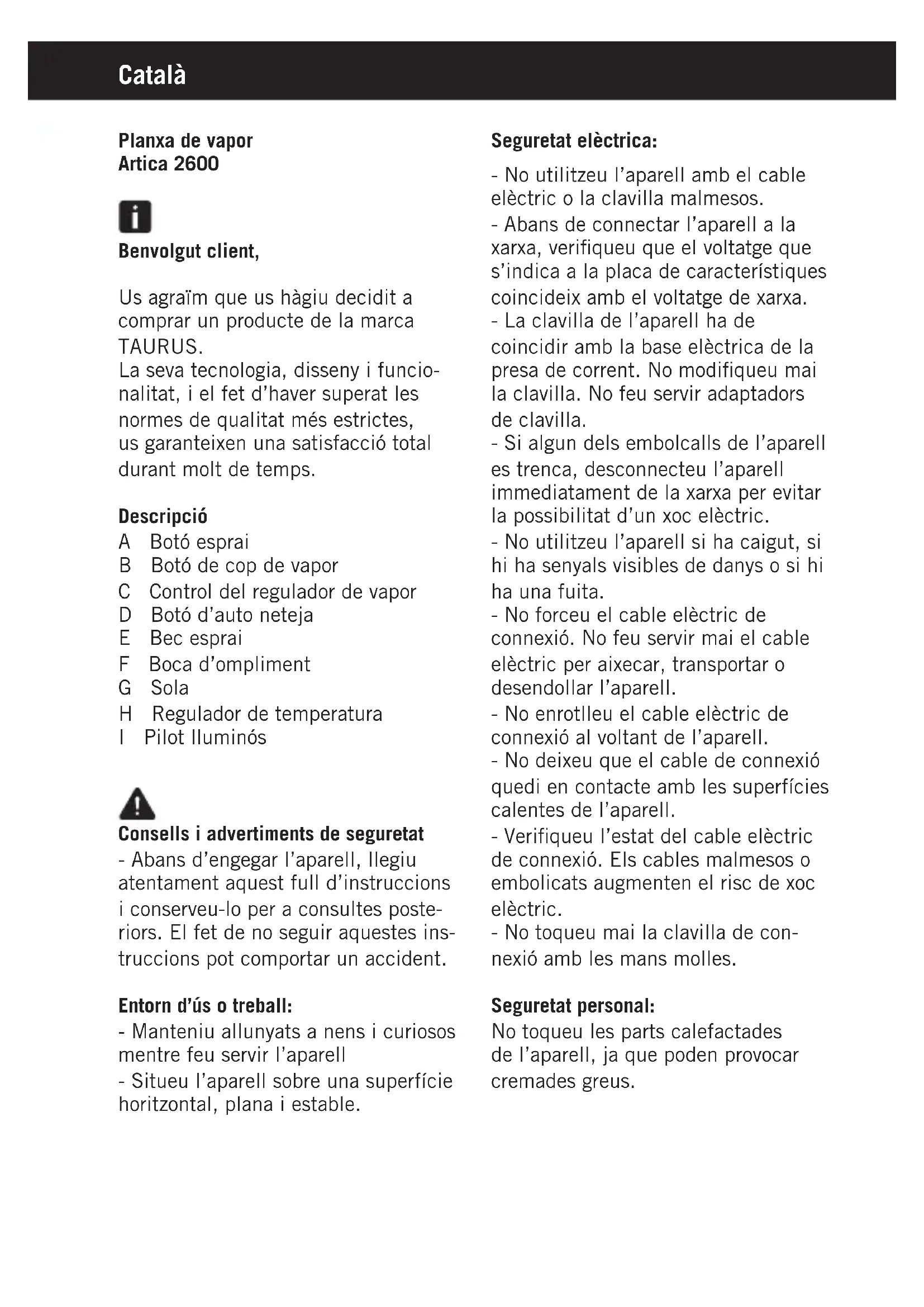 Artica - Planxa TAURUS - Manual d'usuari gratuït