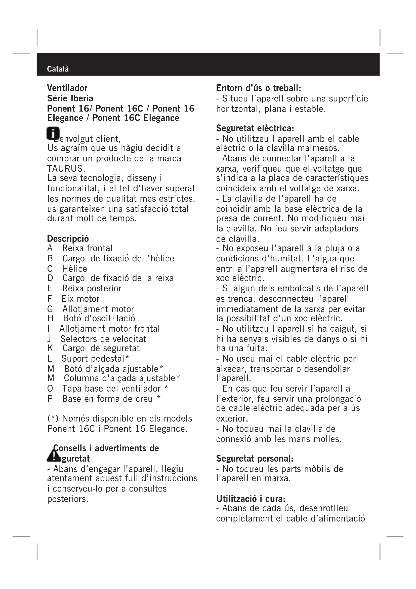 Serie Iberia - Ventilador TAURUS - Manual d'usuari gratuït