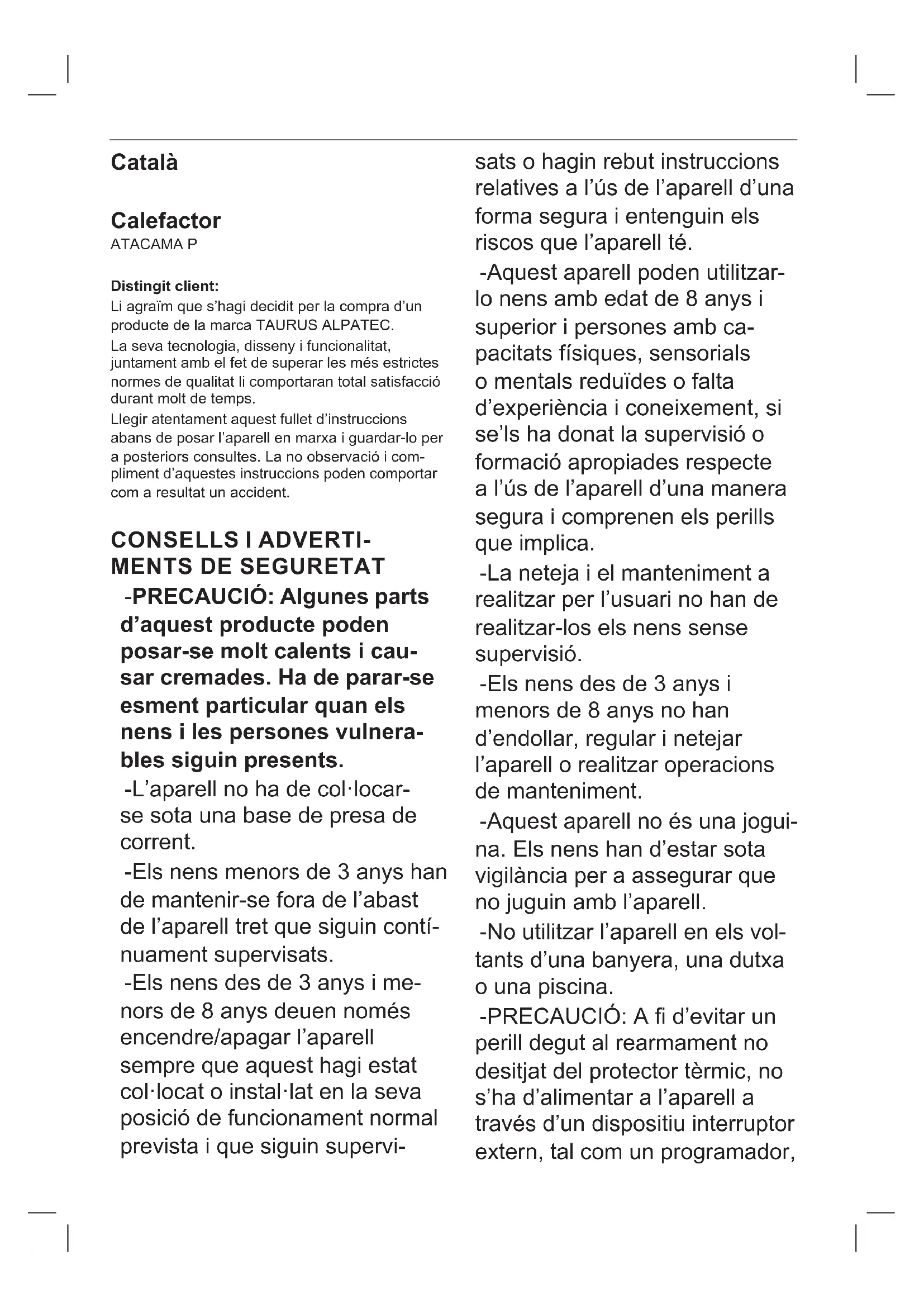 Atacama P - Calefacció TAURUS - Manual d'usuari gratuït