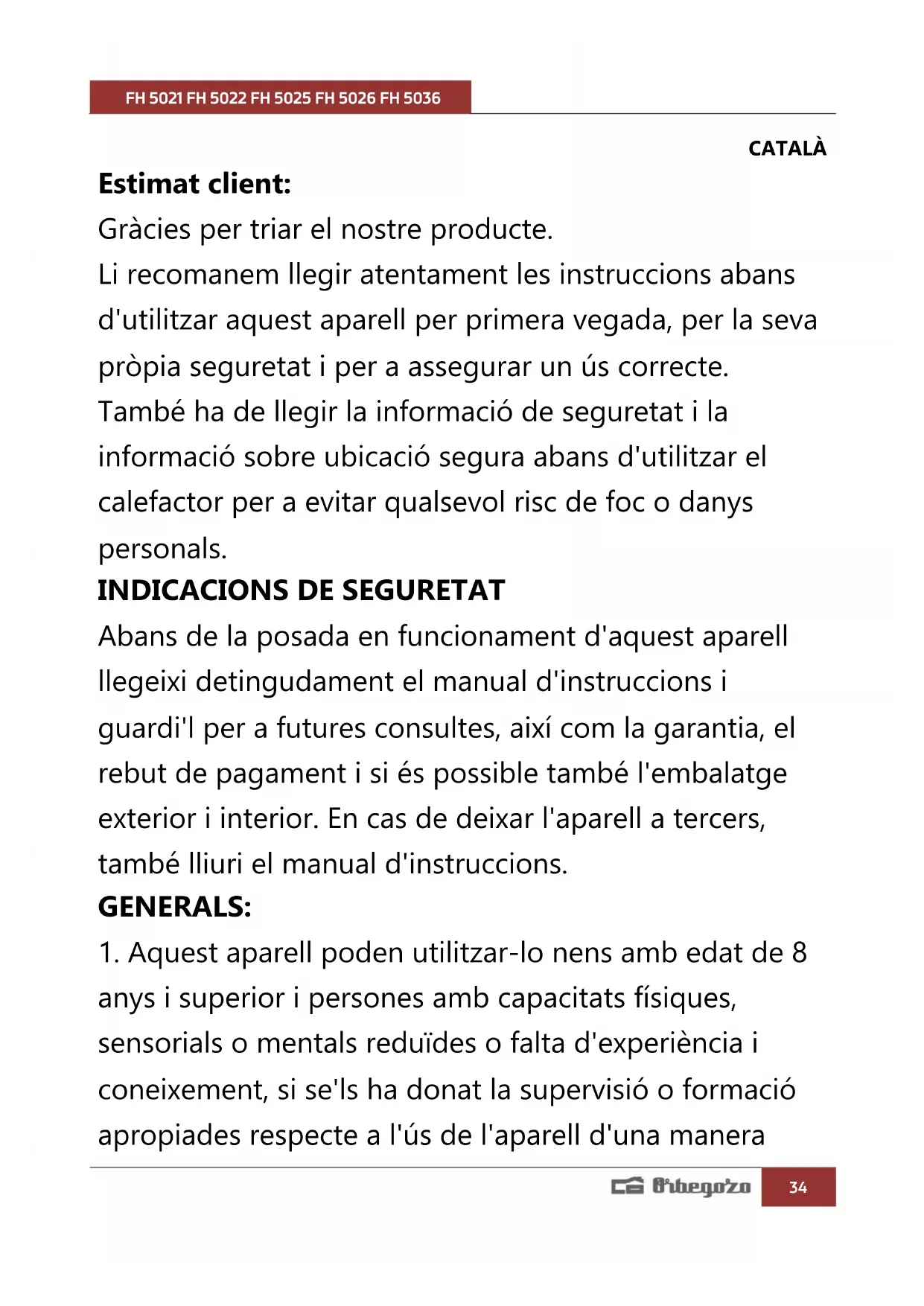 FH 5022 - Calefacció Orbegozo - Manual d'usuari gratuït