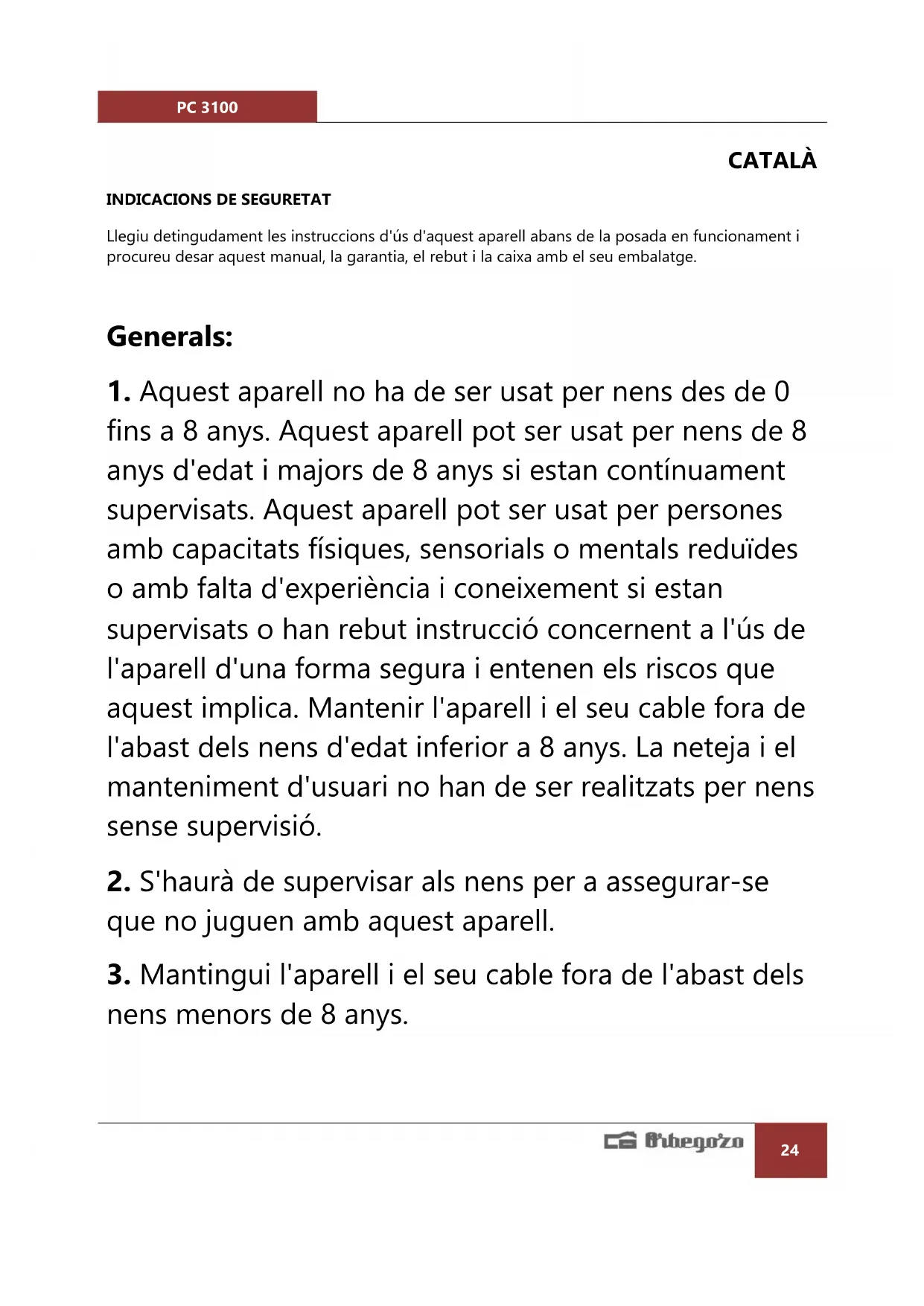 d'instruccions, pot trobar-la a www.orbegozo.com.PC 3100