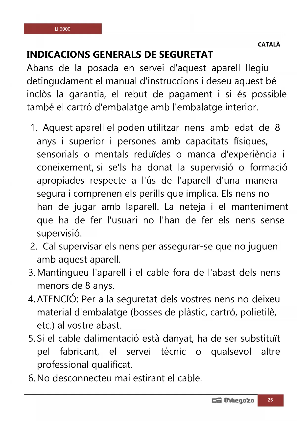 MANUAL D'USUARI LI 6000 Orbegozo
