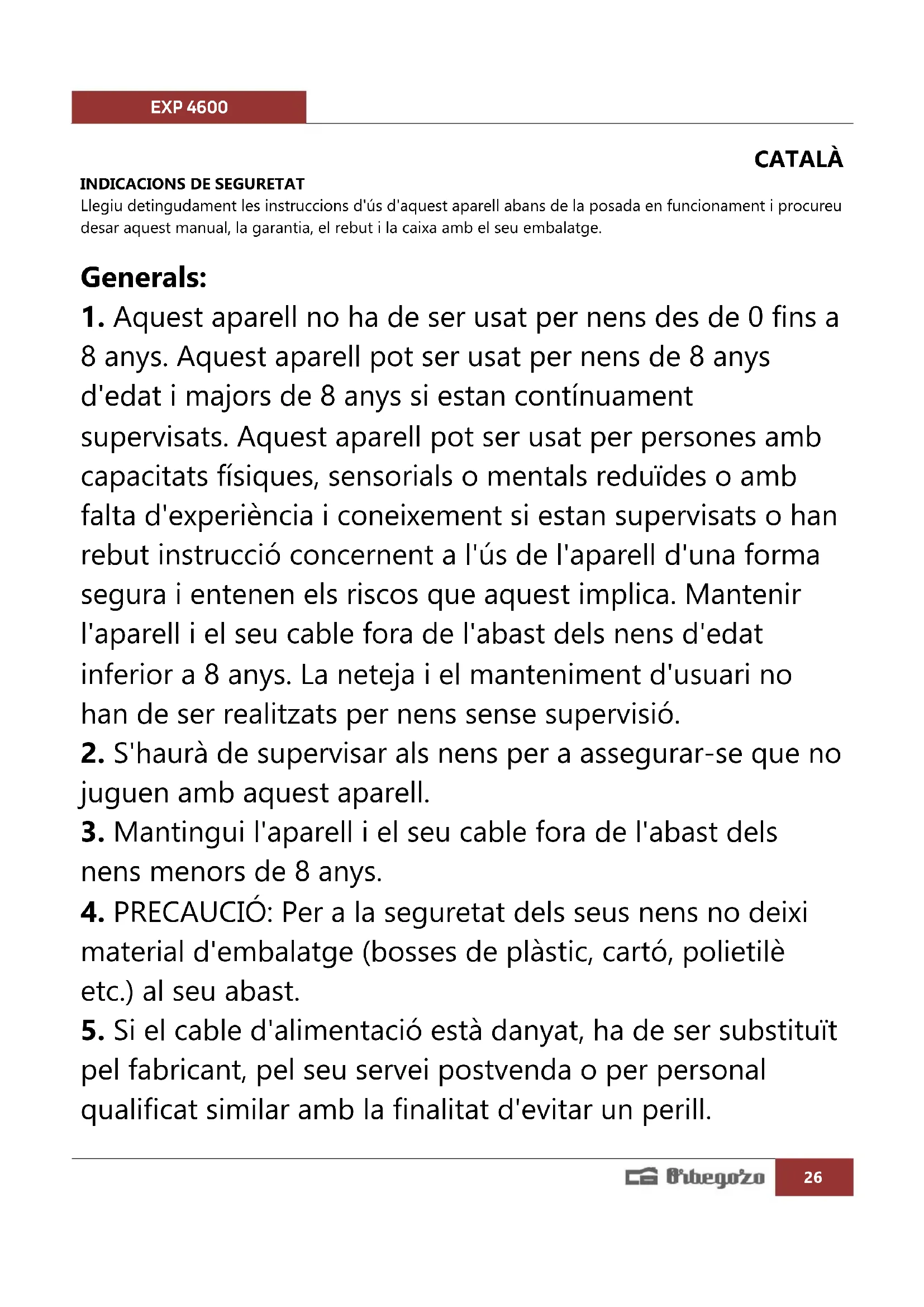 MANUAL D'USUARI EXP 4600 Orbegozo