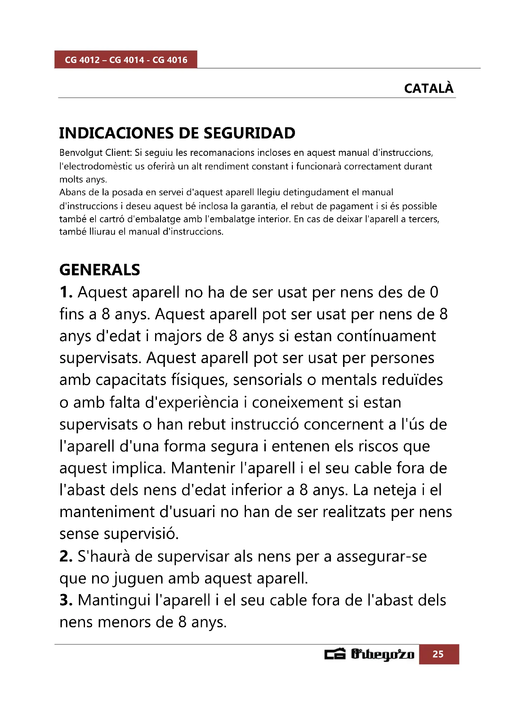 MANUAL D'USUARI CG 4014 Orbegozo