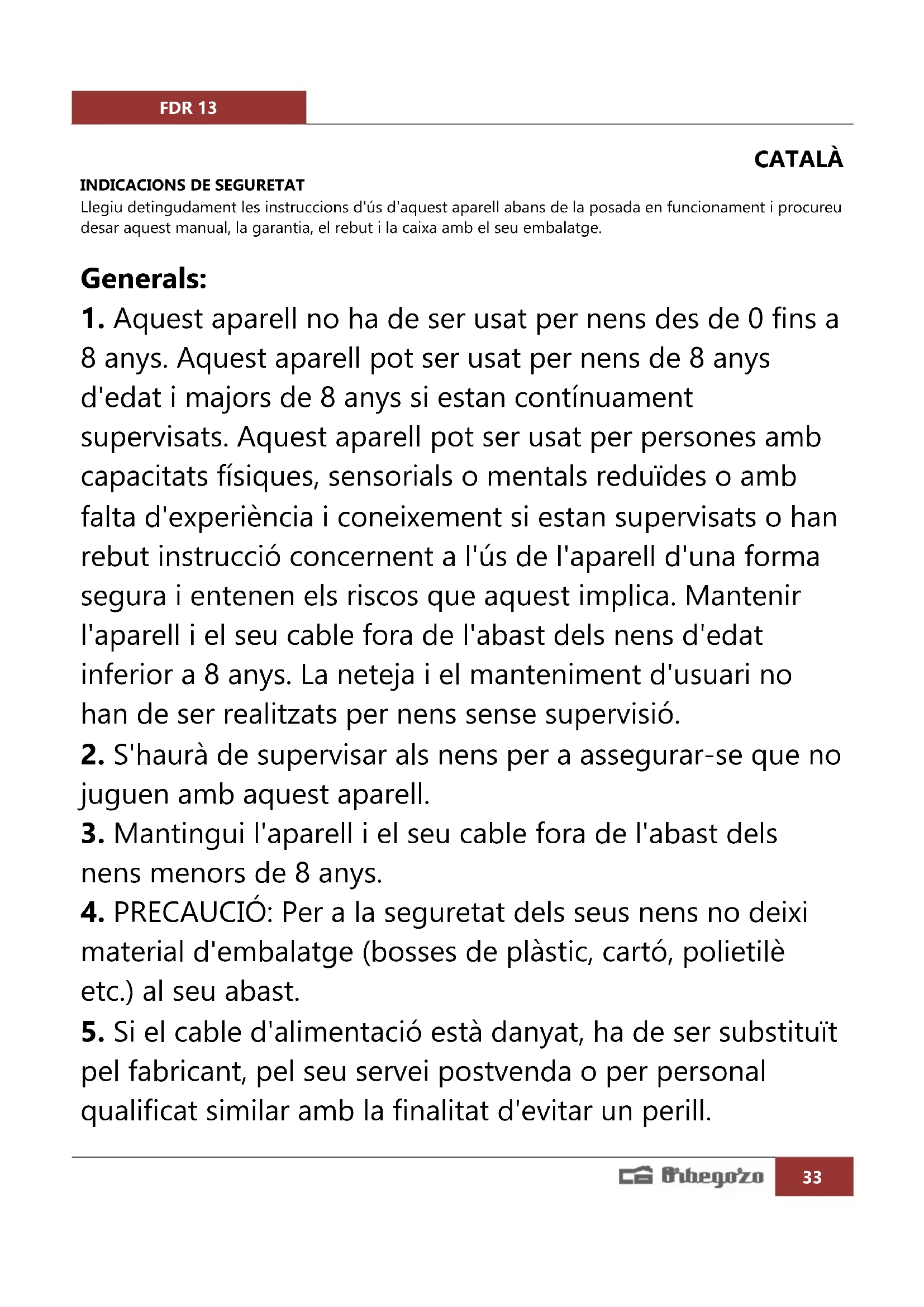 MANUAL D'USUARI FDR 13 Orbegozo