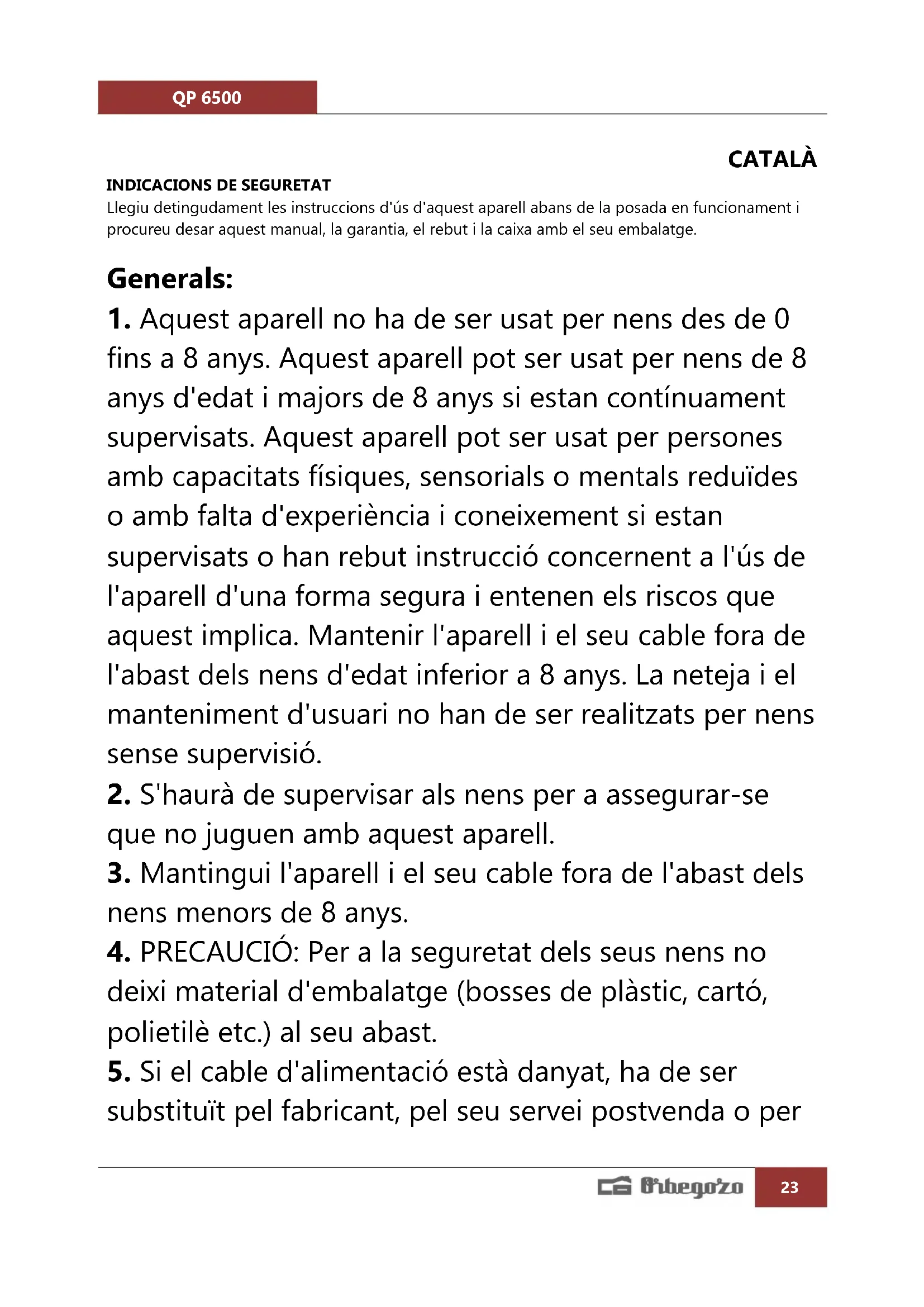 MANUAL D'USUARI QP 6500 Orbegozo