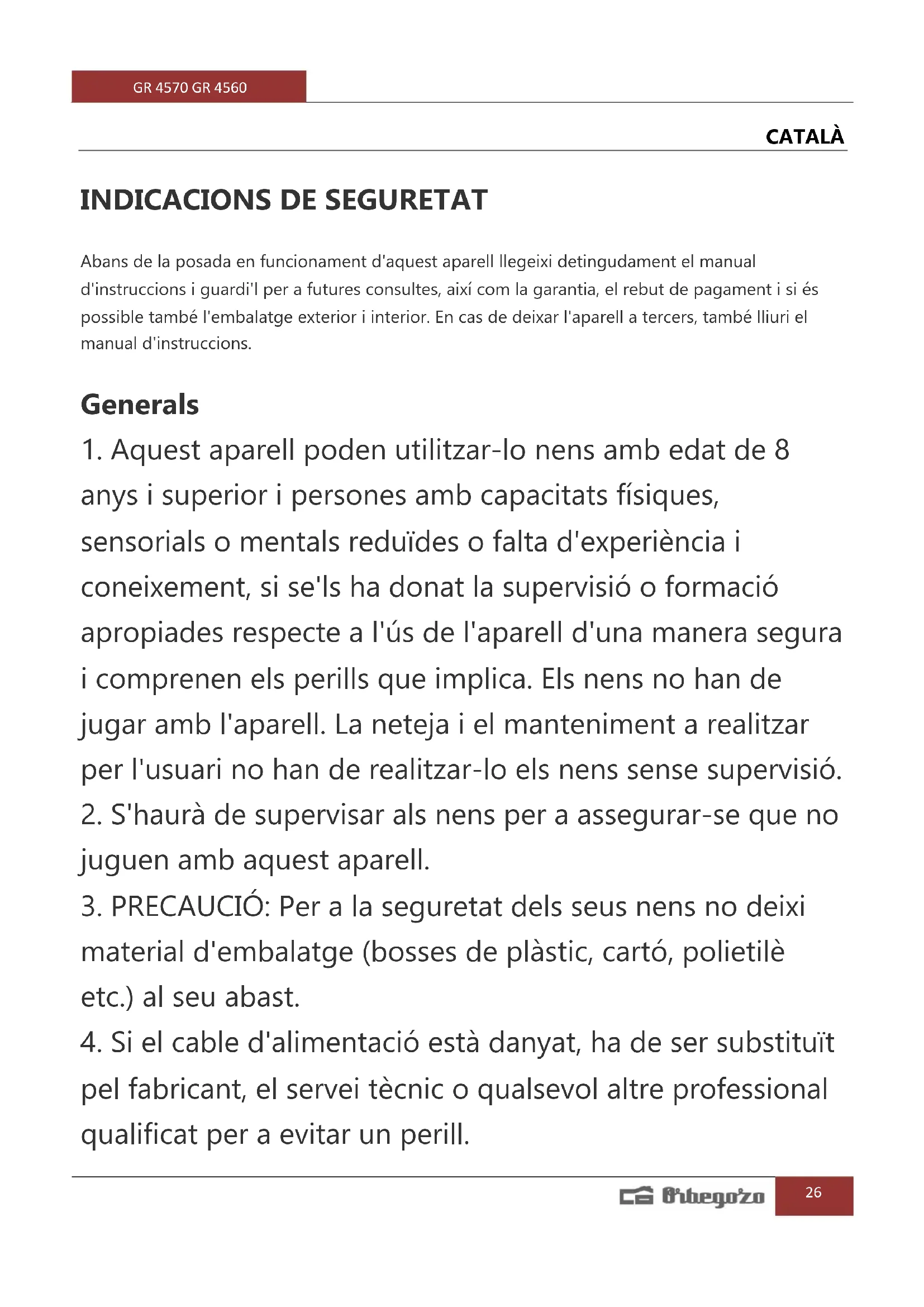 MANUAL D'USUARI GR 4560 Orbegozo