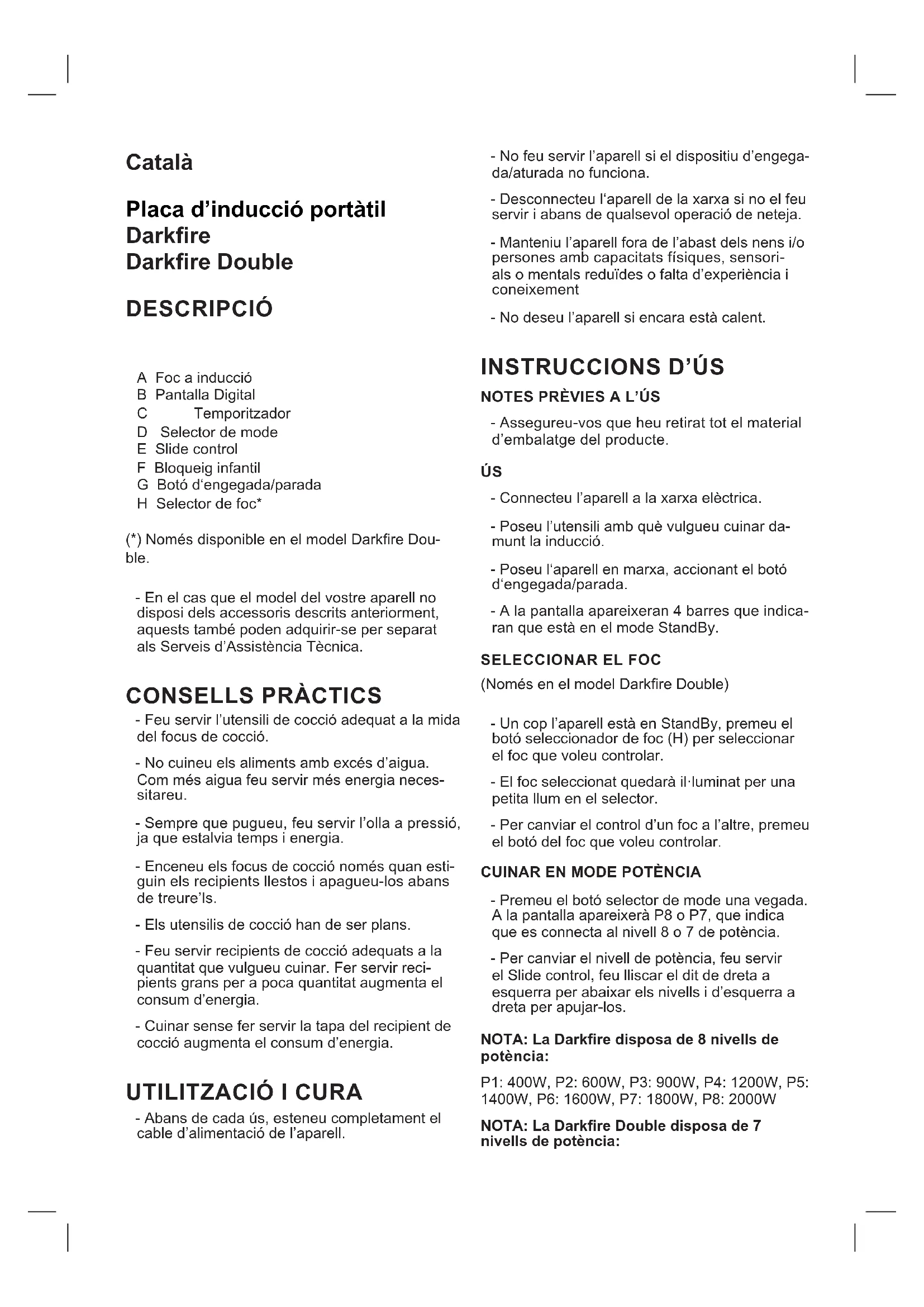 Darkfire Double - Cuina TAURUS - Manual d'usuari gratuït