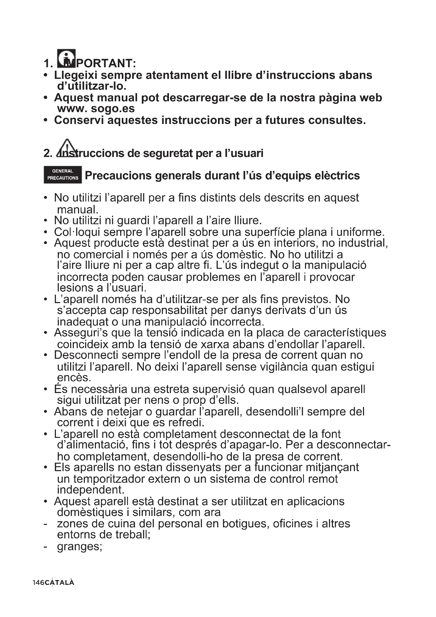 - Aquest manual pot descarregar-se de la nostra pàgina web www. sogo.es