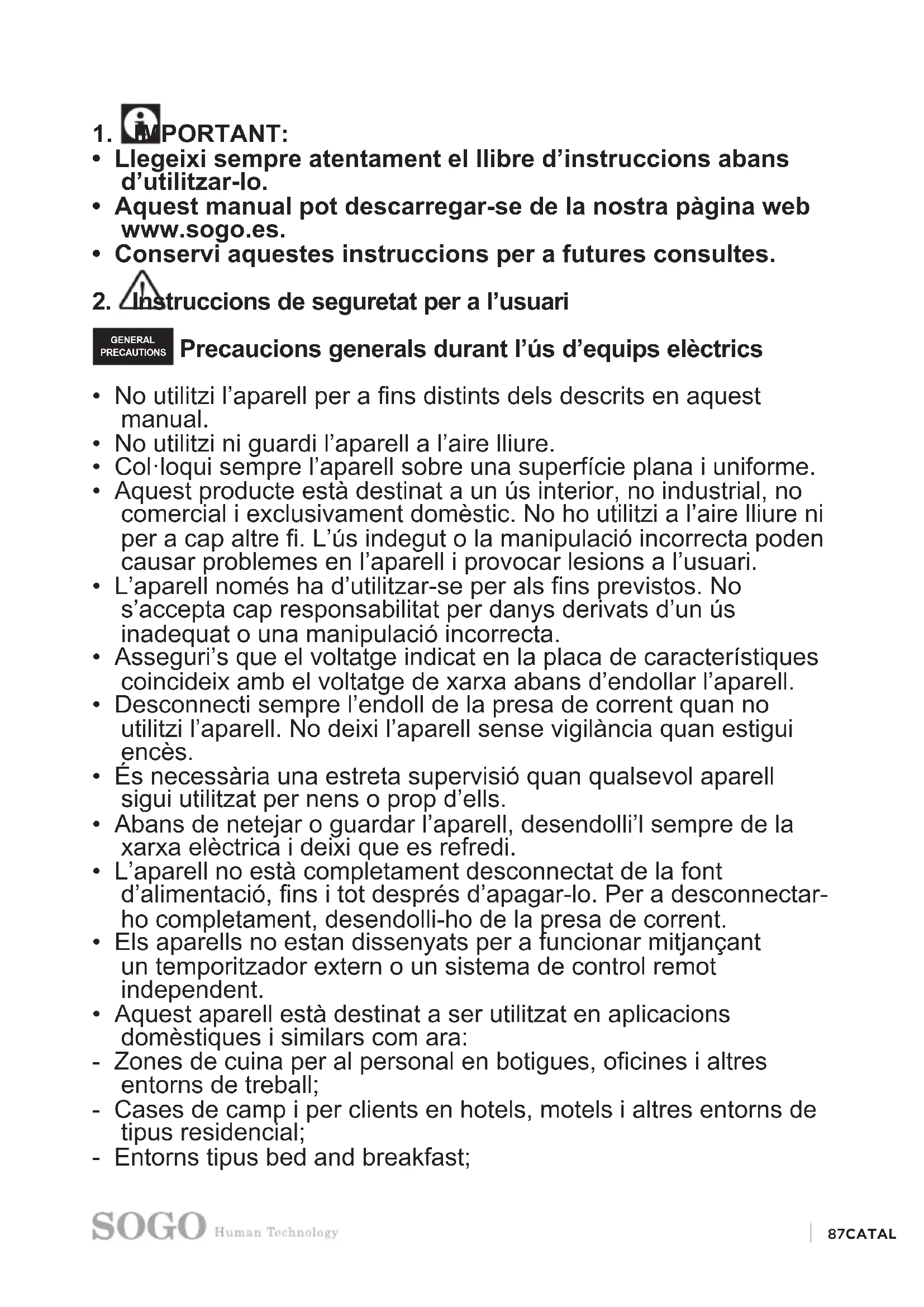 - Aquest manual pot descarregar-se de la nostra pàgina web www.sogo.es.