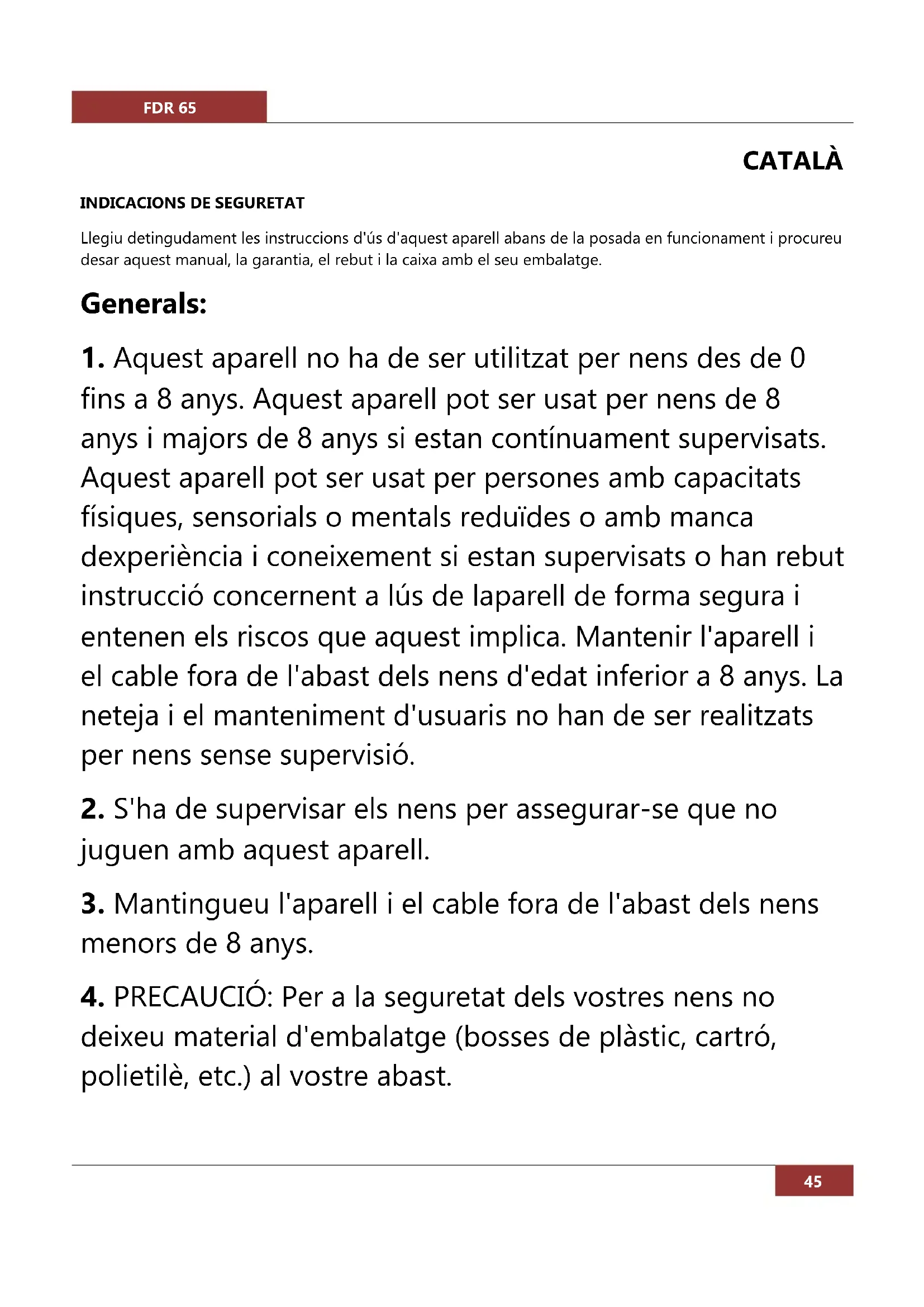 1. Aquest aparell no ha de ser utilitzat per nens des de 0