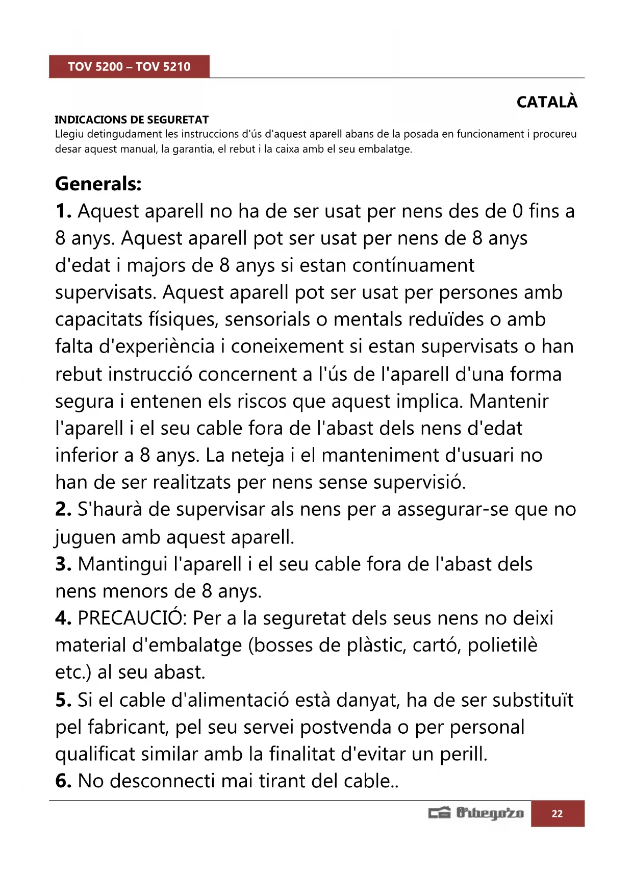 MANUAL D'USUARI TOV 5200 Orbegozo