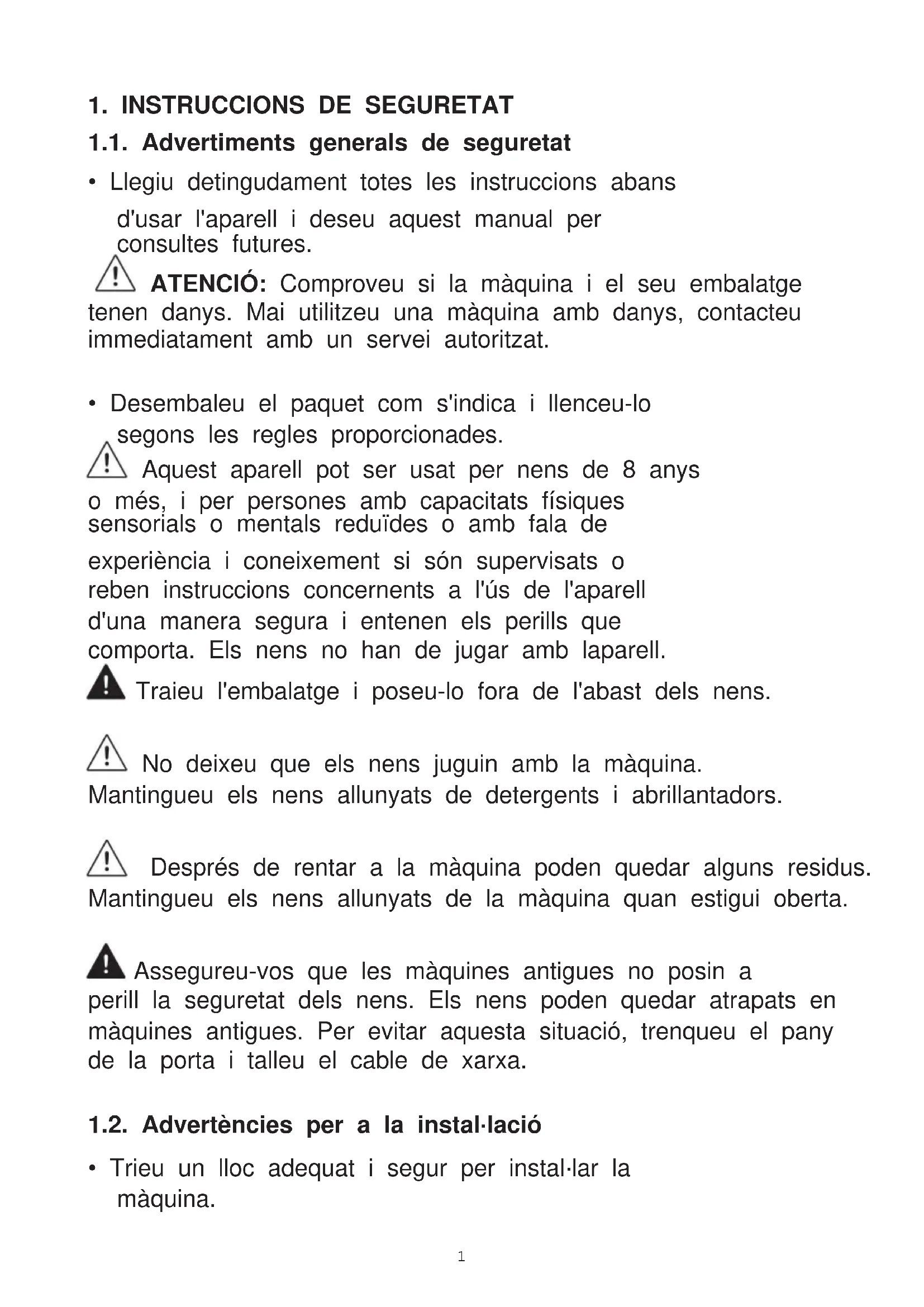 1. INSTRUCCIONS DE SEGURETAT