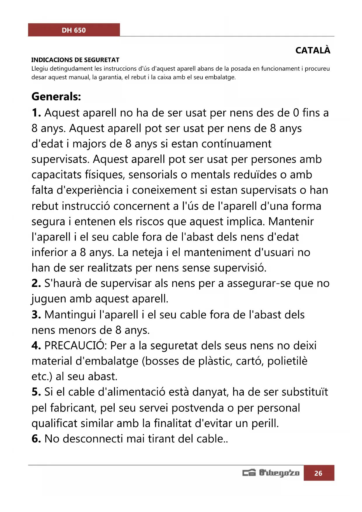 MANUAL D'USUARI DH 650 Orbegozo