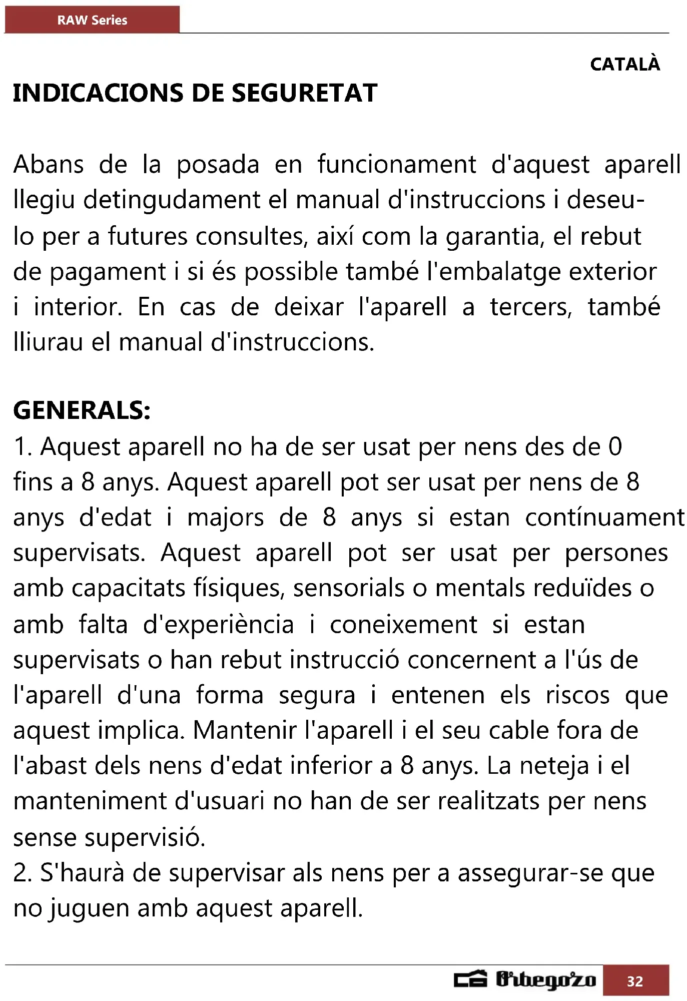 MANUAL D'USUARI RAW 2000 Orbegozo