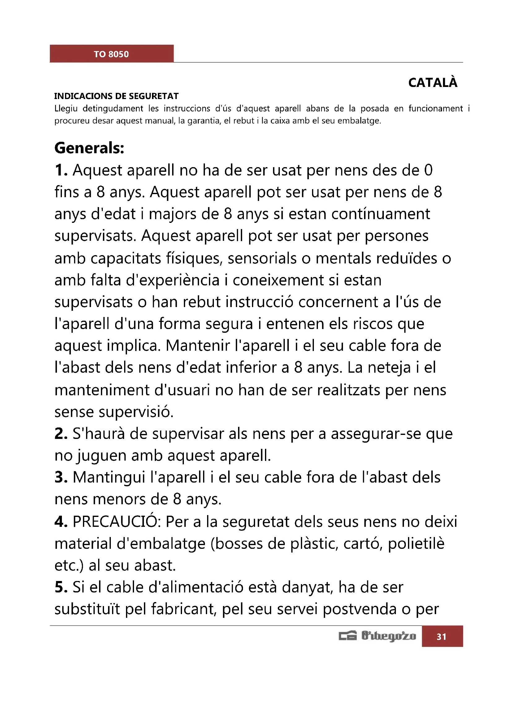 MANUAL D'USUARI TO 8050 Orbegozo