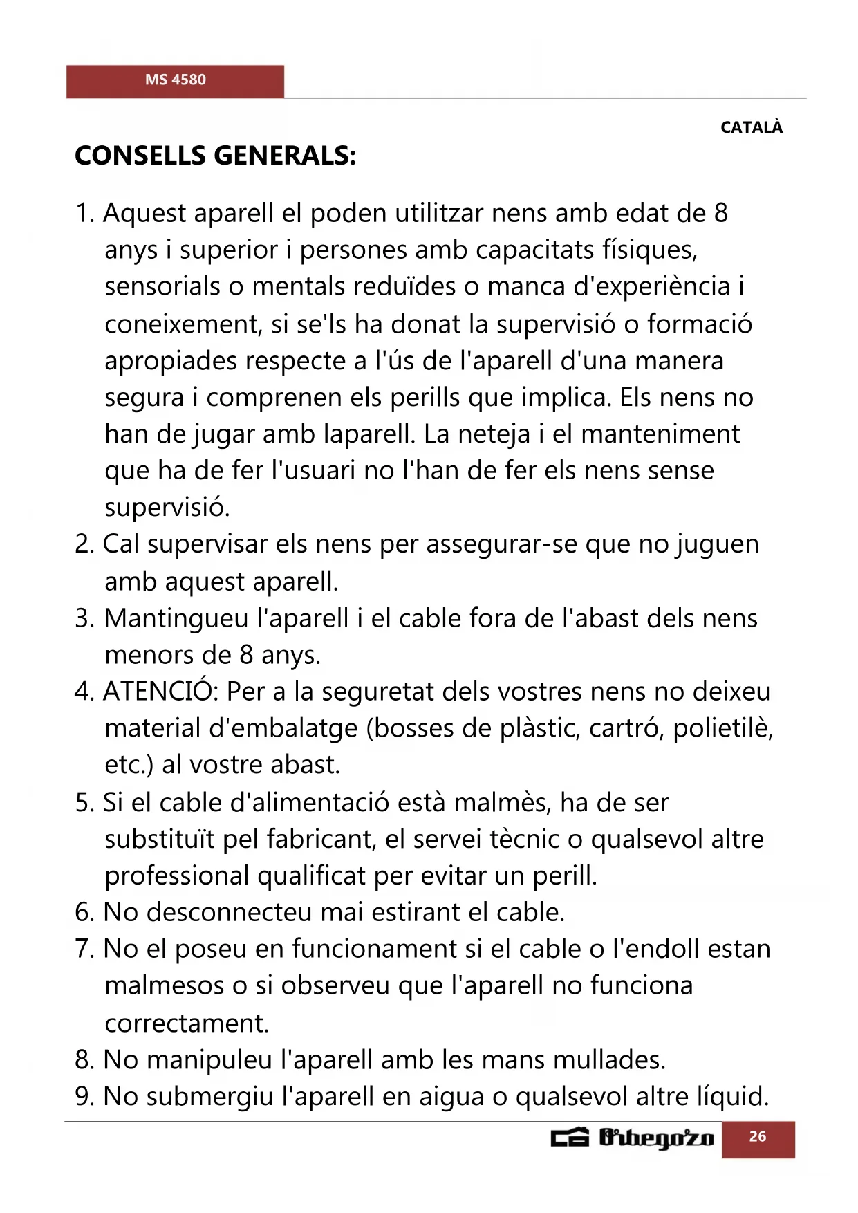 Trobeu gratuïtament el manual del dispositiu MS 4580 Orbegozo en format PDF.