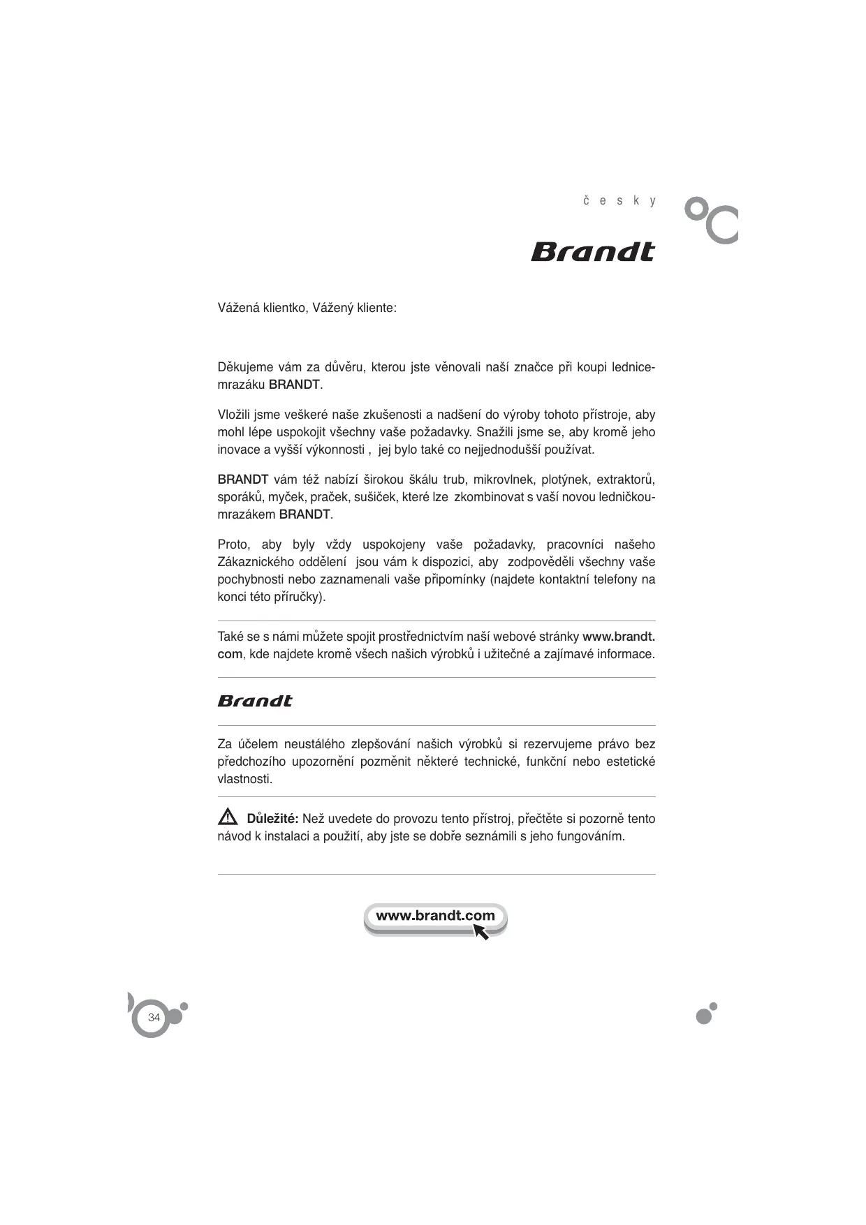 Najděte návod k zařízení zdarma BFL3702BW BRANDT ve formátu PDF.