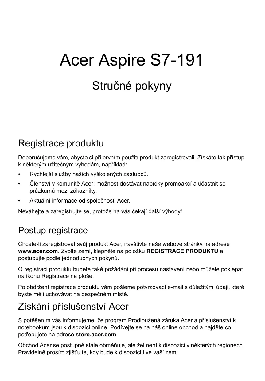 NÁVOD K OBSLUZE ASPIRE S7-191 ACER