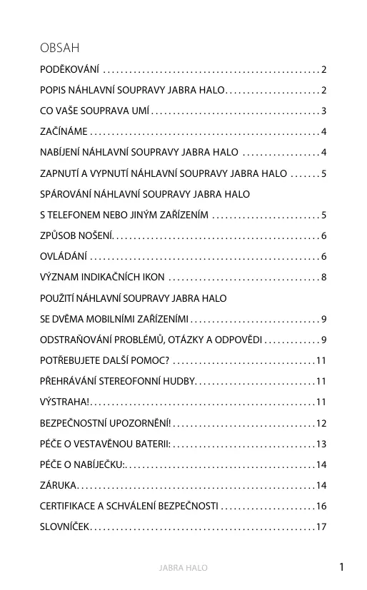 - L’utilisation d’un casque vous empêchera d’entendre d’autres sons. Soyez prudent si vous utilisez le casque lorsque vous pratiquez une activité qui requiert toute votre attention. - En cas de port de stimulateur cardiaque ou d’autres appareils médicaux électriques, il convient de consulter votre médecin avant d’utiliser cet appareil. - Ce paquet contient de petites pièces qui peuvent représenter un danger pour les enfants et doit être placé hors de portée des enfants. Les sacs en eux-mêmes ainsi que les petits éléments qu’ils contiennent présentent un risque d’étouffement s’ils sont avalés. - N’essayez jamais de démonter vous-même le produit. Aucun des composants ne peut être remplacé ou réparé par Jabra HALO