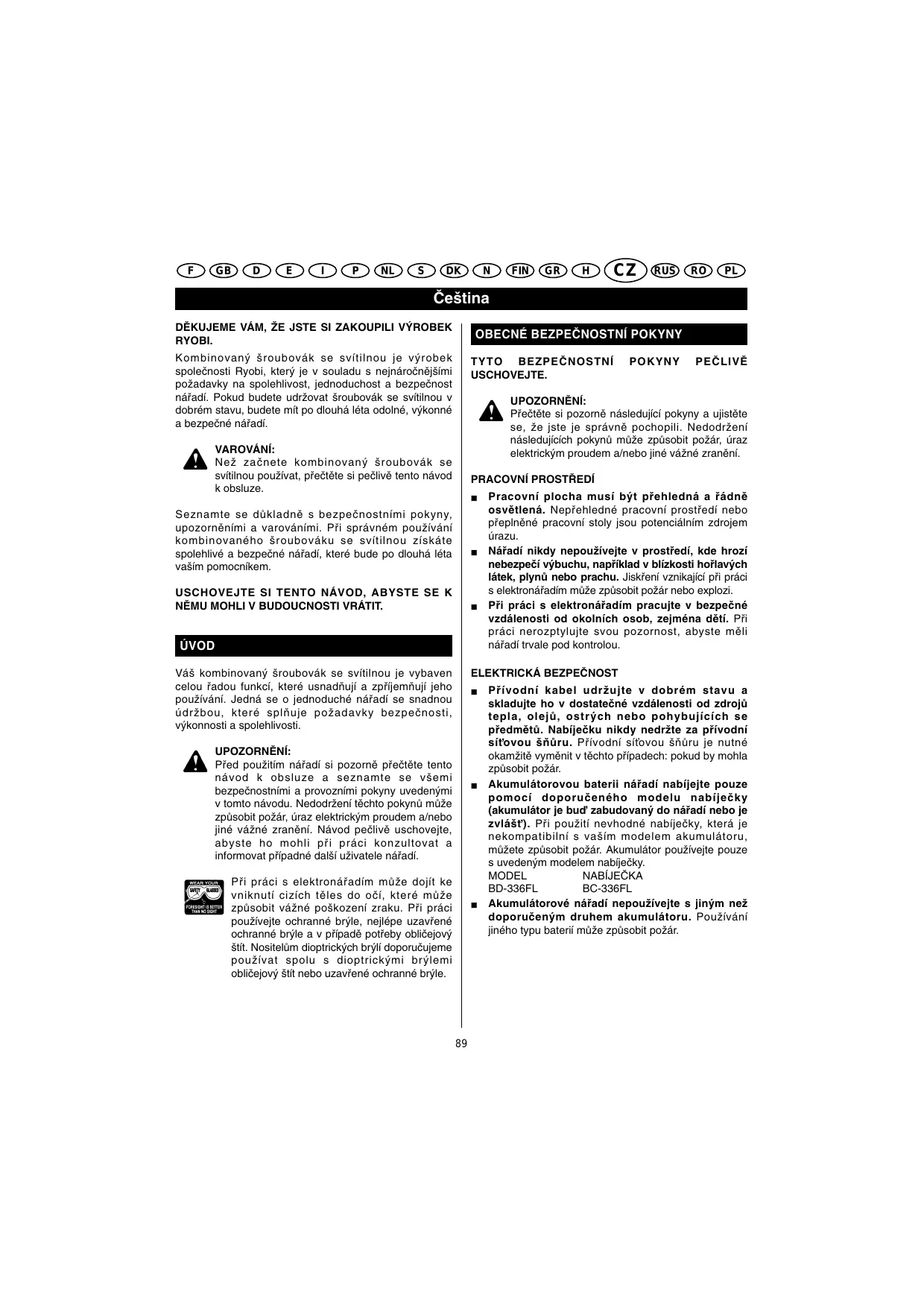 NÁVOD K OBSLUZE BD-336FL RYOBI