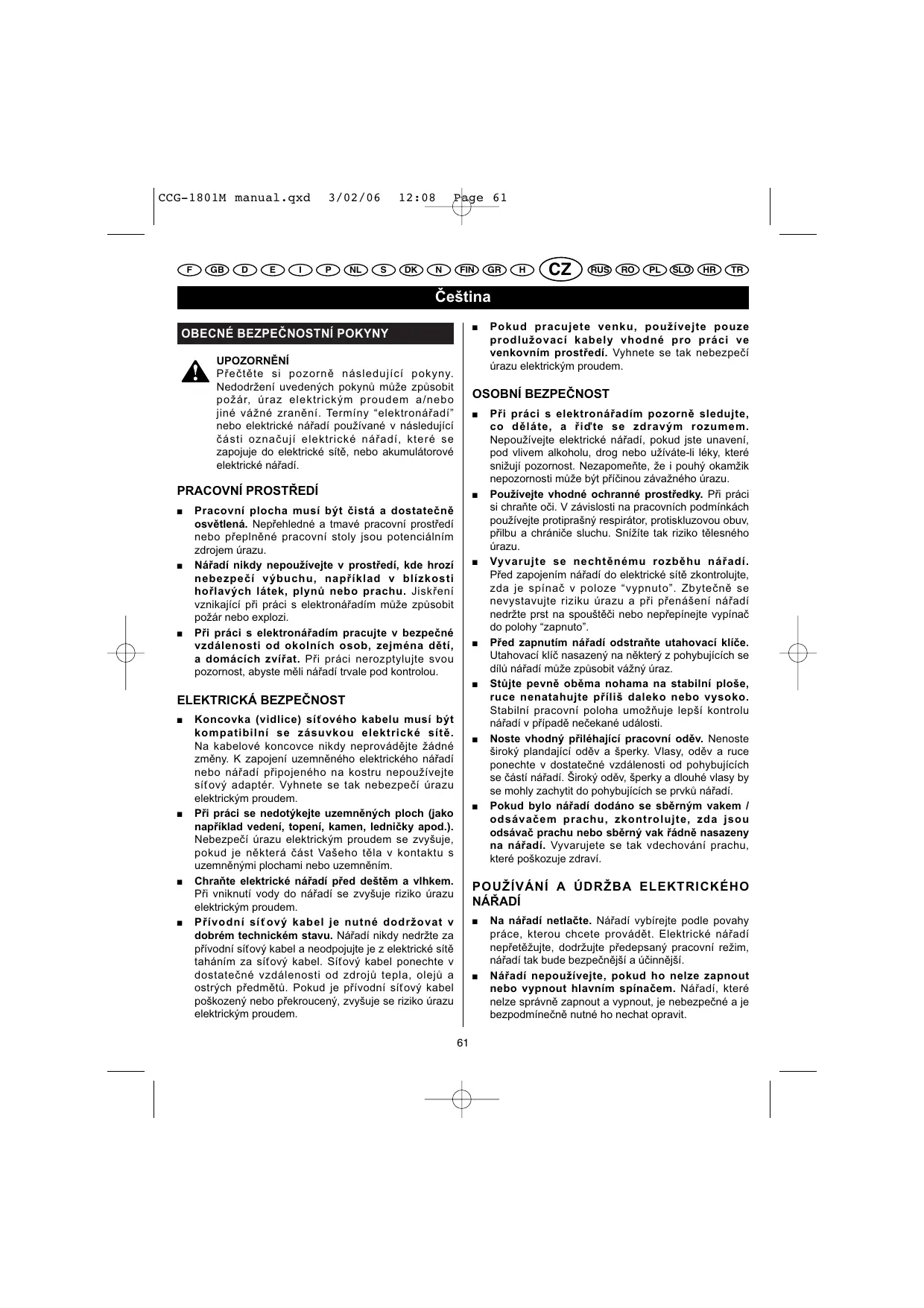 NÁVOD K OBSLUZE CCG-1801M RYOBI