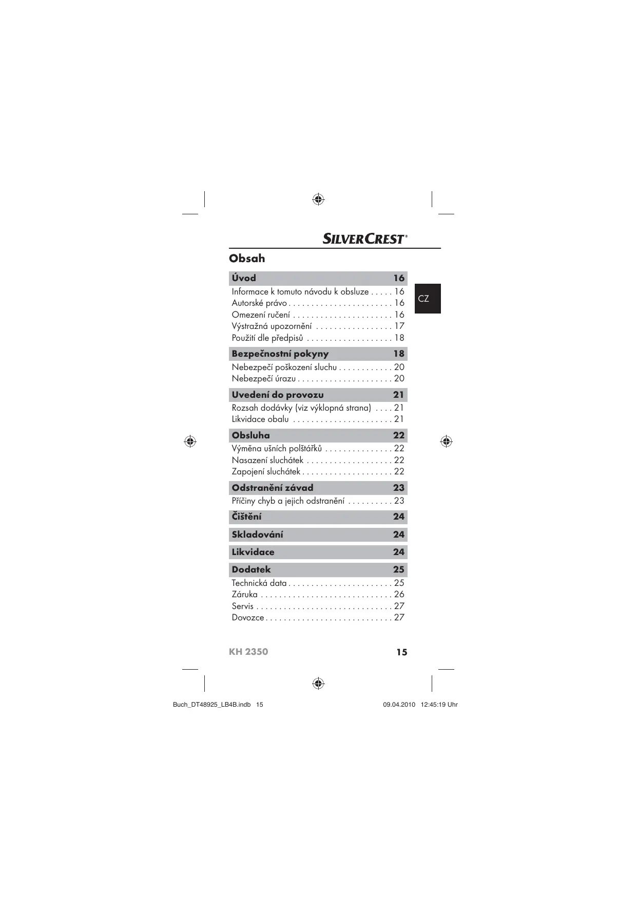 Najděte návod k zařízení zdarma KH 2350 SILVERCREST ve formátu PDF.