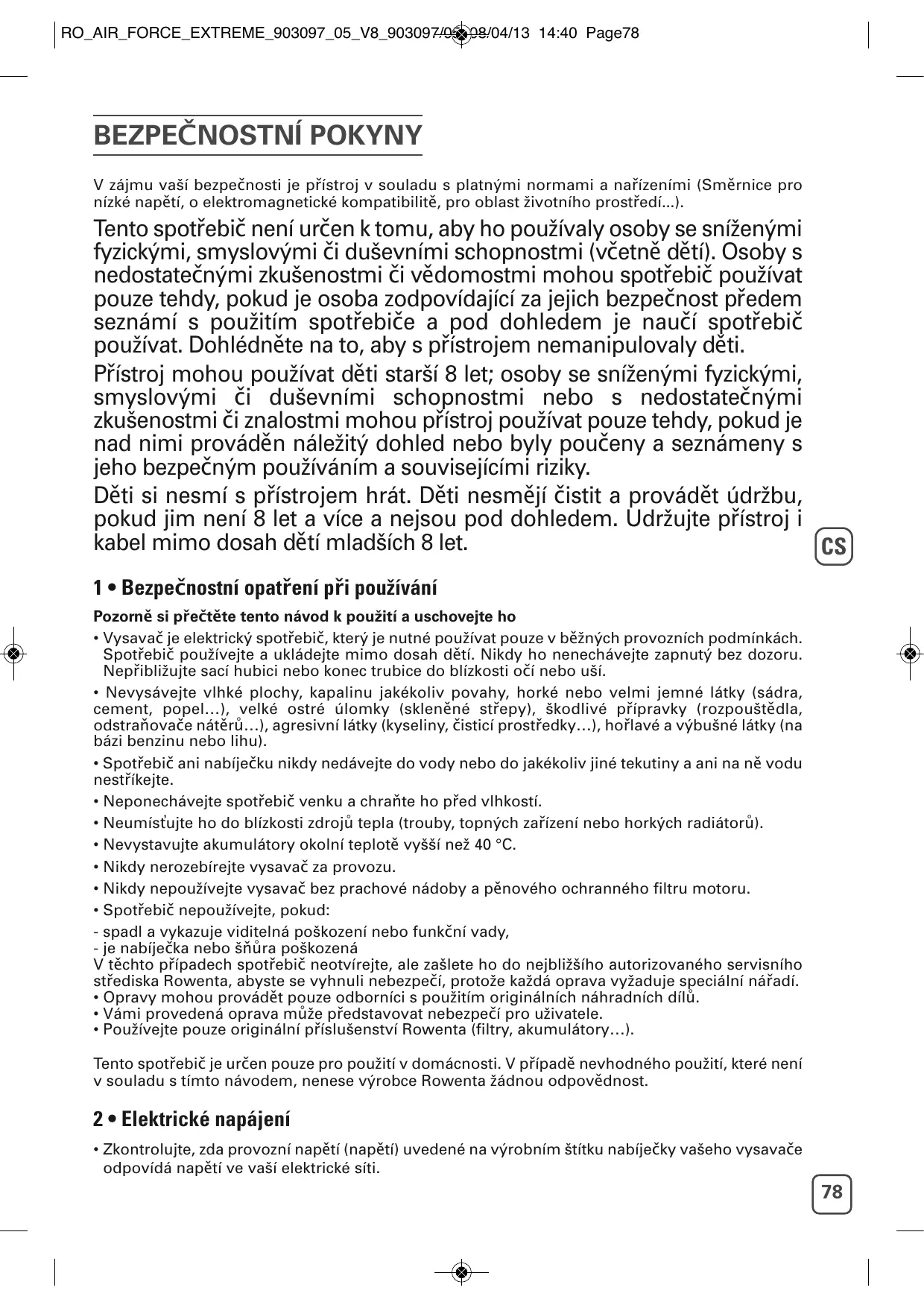 NÁVOD K OBSLUZE RH8753, RH8754, RH8758/01, RH8771, RH8775 01, RH8779 ROWENTA