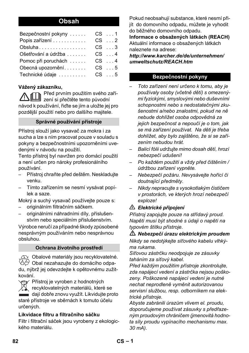 Le filtre et le sac du filtre sont fabriqués en matériaux recyclables. S'ils ne contiennent aucune substance aspirée dont l'élimination est interdite dans les déchets ménagers, vous pouvez les jeter dans les déchets ordinaires. Instructions relatives aux ingrédients (REACH) Les informations actuelles relatives aux ingrédients se trouvent sous : http://www.karcher.de/de/unternehmen/ umweltschutz/REACH.htm