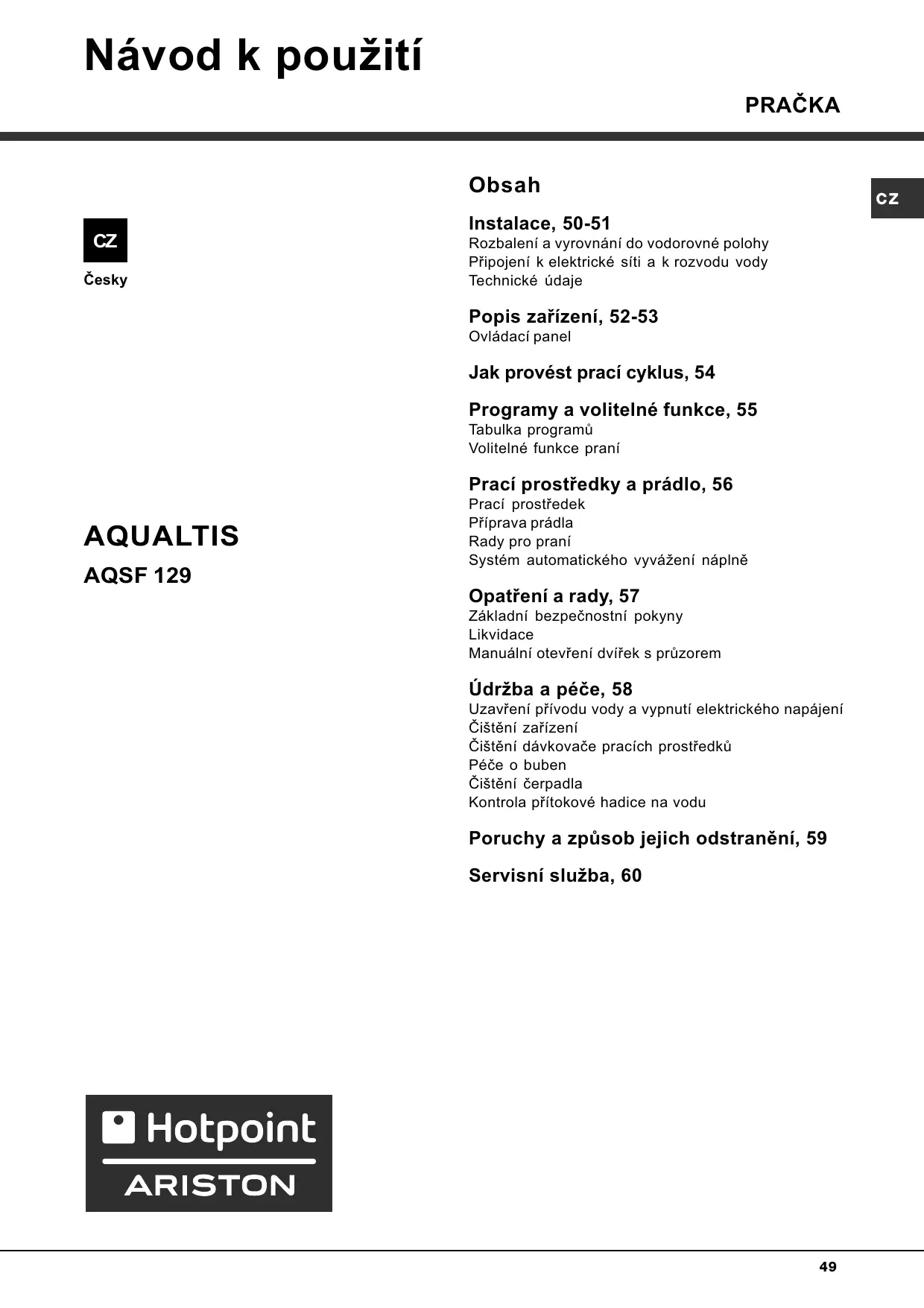 NÁVOD K OBSLUZE AQSF 129 HOTPOINT