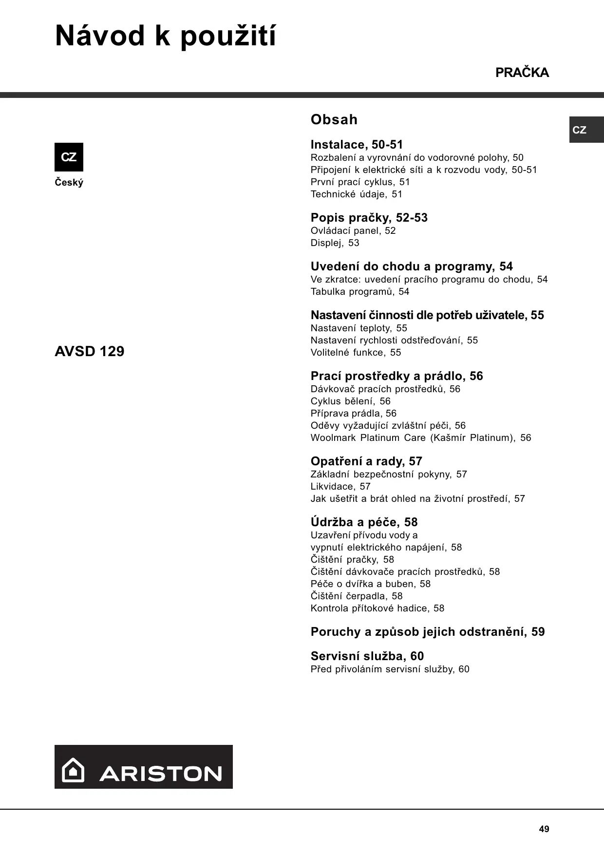 NÁVOD K OBSLUZE AVSD 129 HOTPOINT