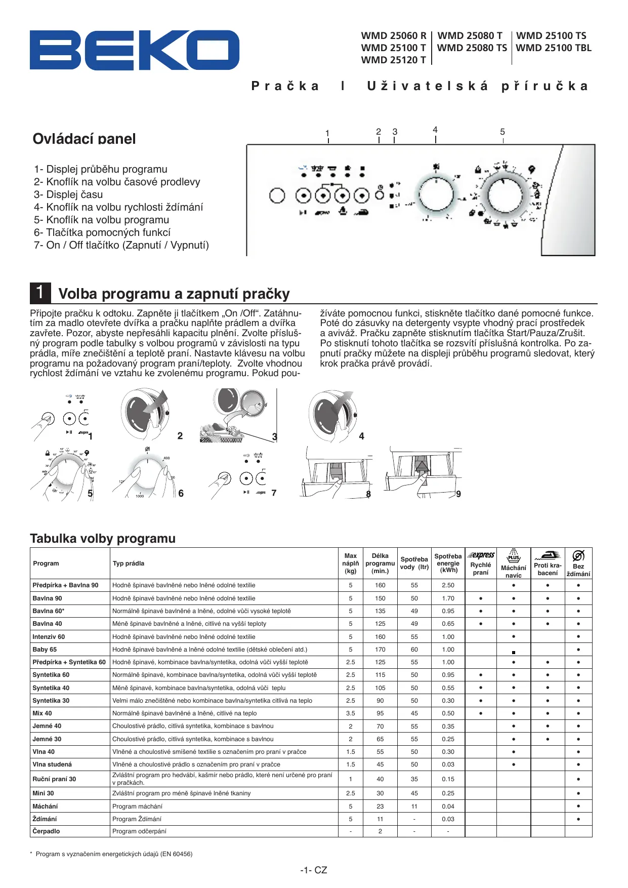 NÁVOD K OBSLUZE WMD 25100 T BEKO