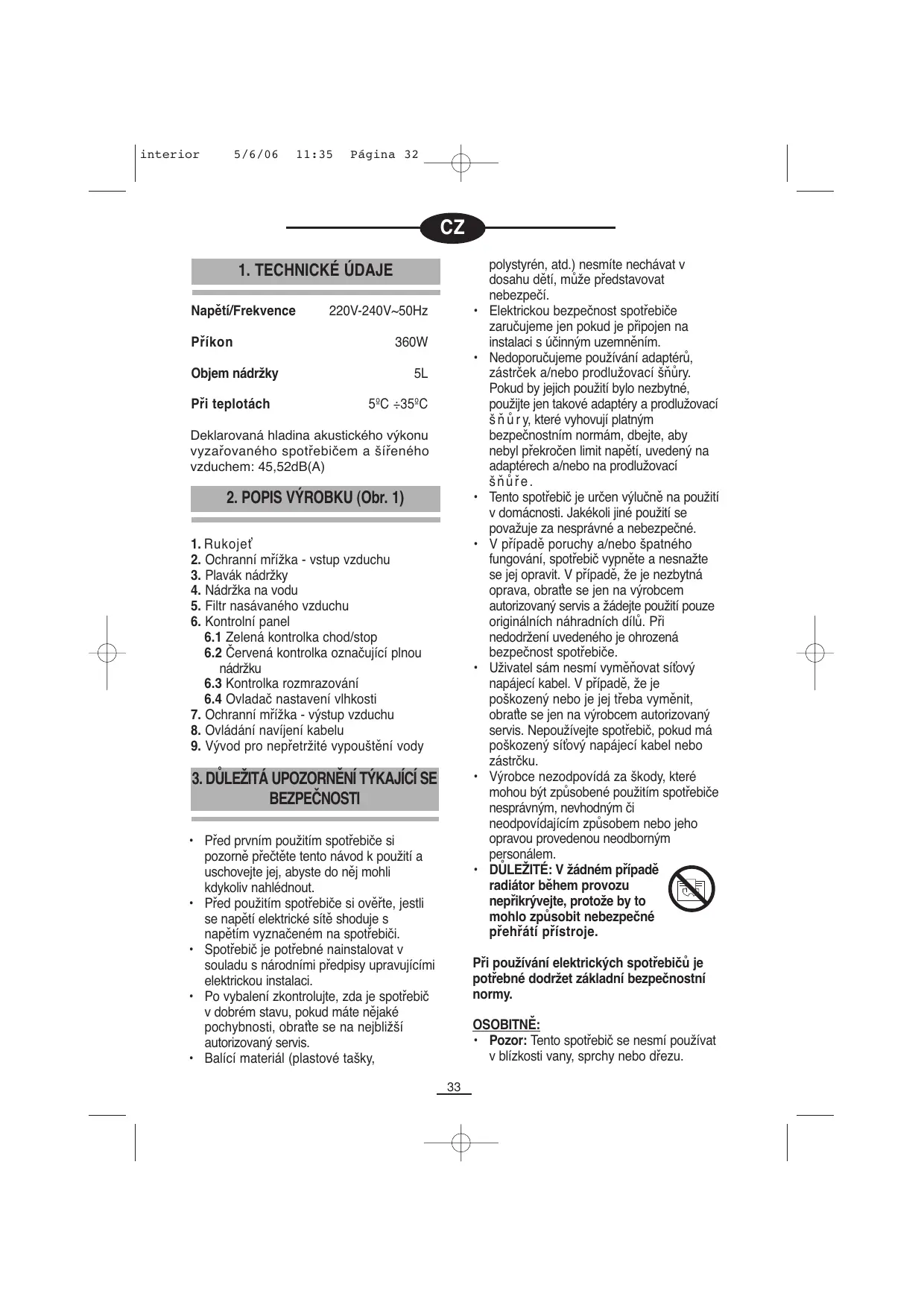 interior 5/6/06 11:35 Página 34 automaticky zapne a vypne, bude udržovat nastavený stupeň vlhkosti. Optimální podmínky ovzduší pro pohodlí jsou mezi 50% - 60% relativní vlhkosti.