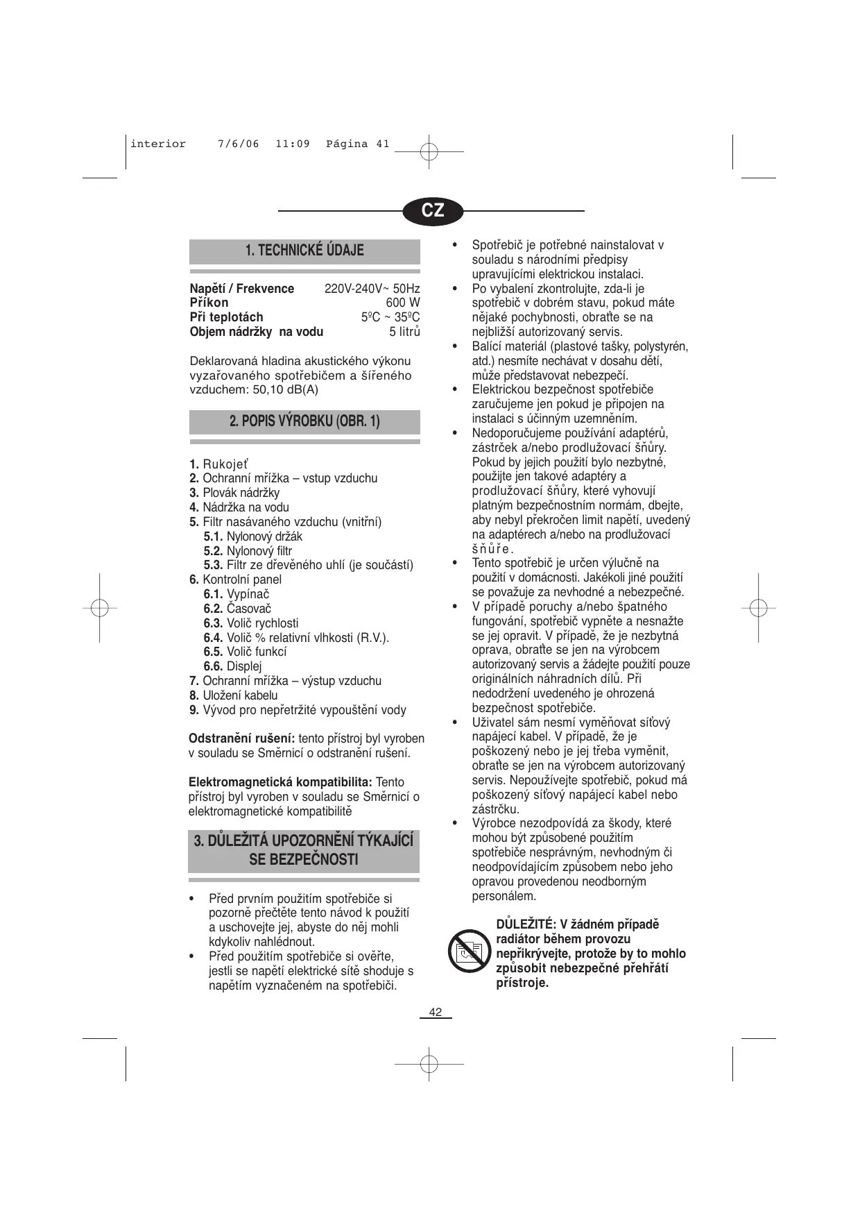 IMPORTANTE: No cubrir en ningún caso el aparato durante el funcionamiento porque se podría producir un sobrecalentamiento peligroso.